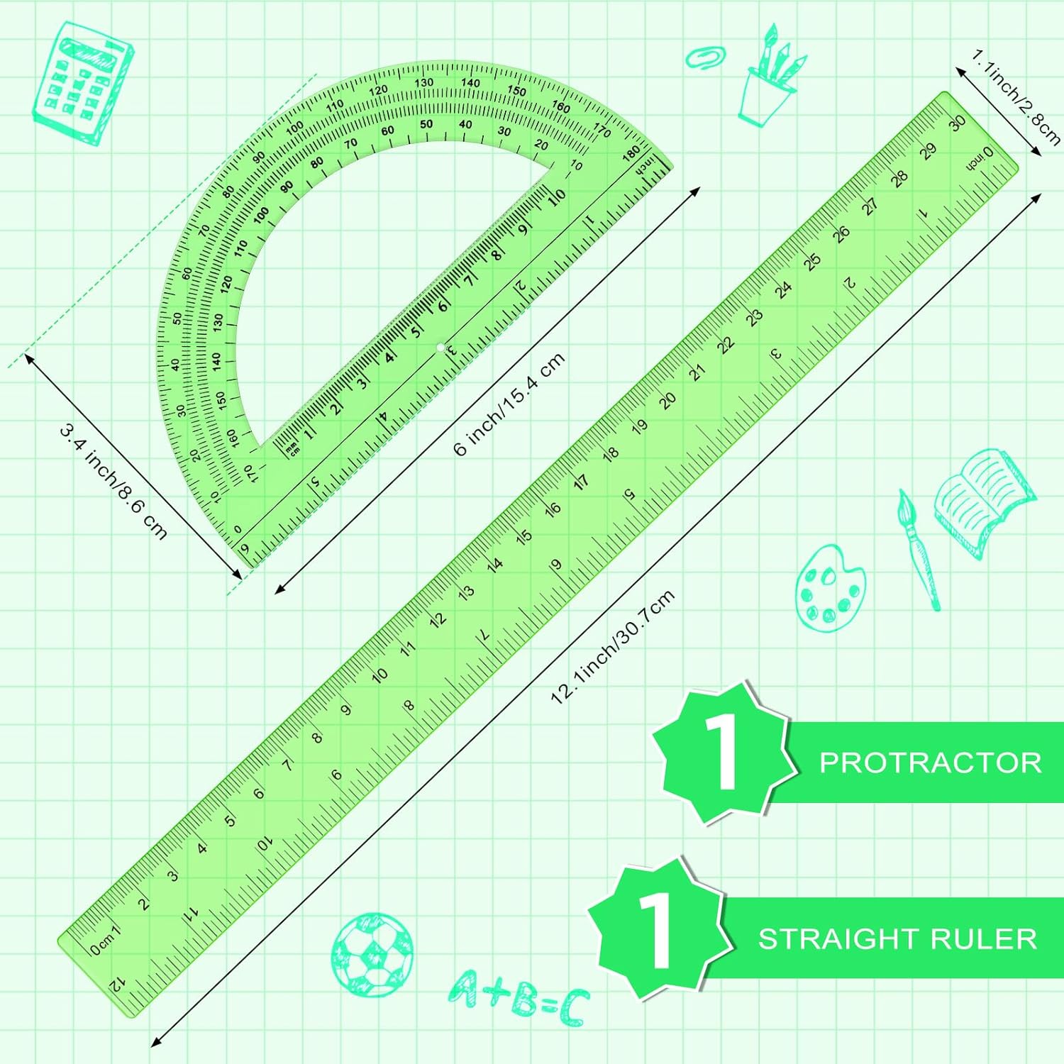 - Meet Your Requirements: you will receive 1 green clear plastic ruler and 1 green clear plastic protractor; They can be utilized to measure the length and the degree of the angle, which can meet your daily life and study requirements