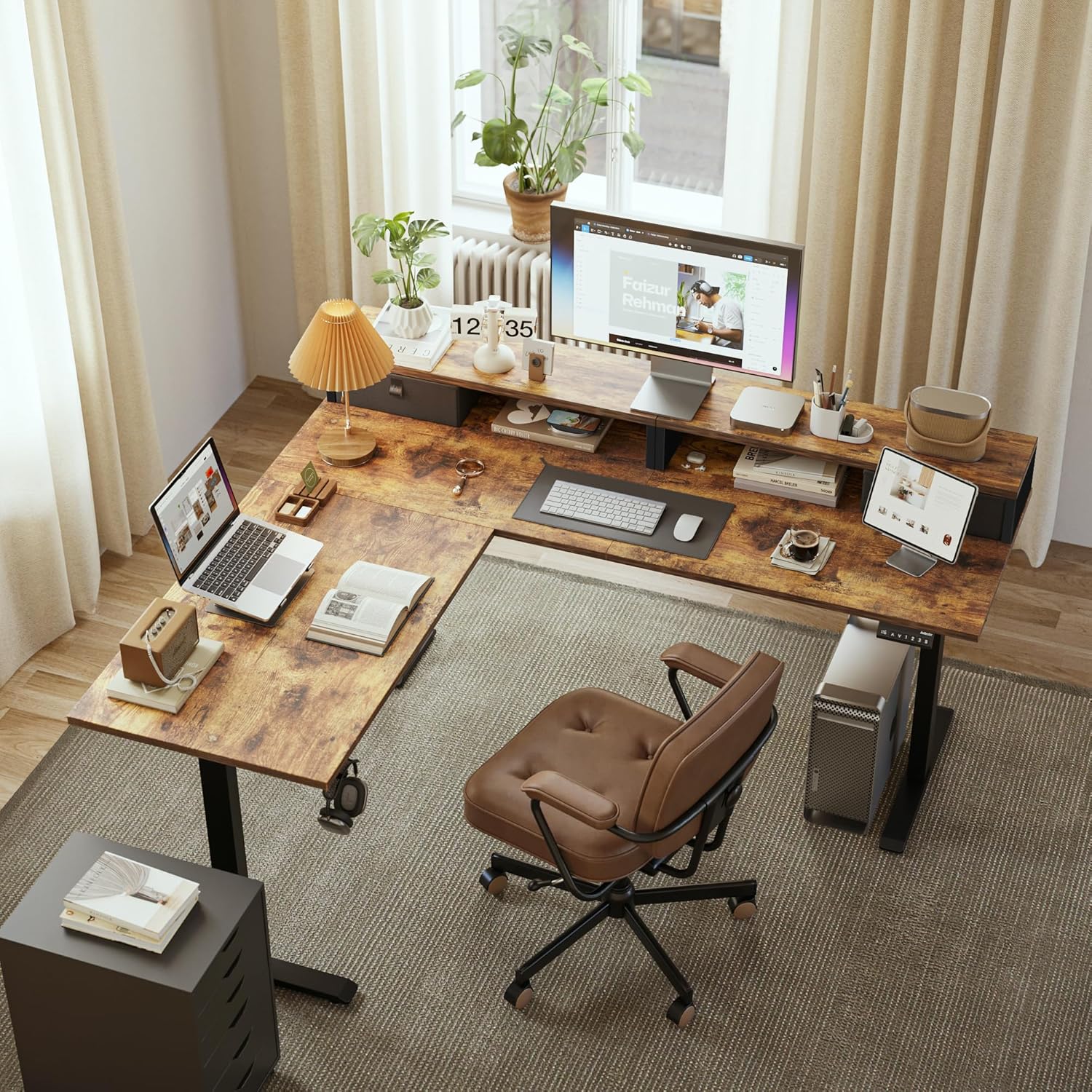 - 【L Shaped Design】The L-shaped extra-large desktop can provide ample office space and can be adapted to any corner of your home.