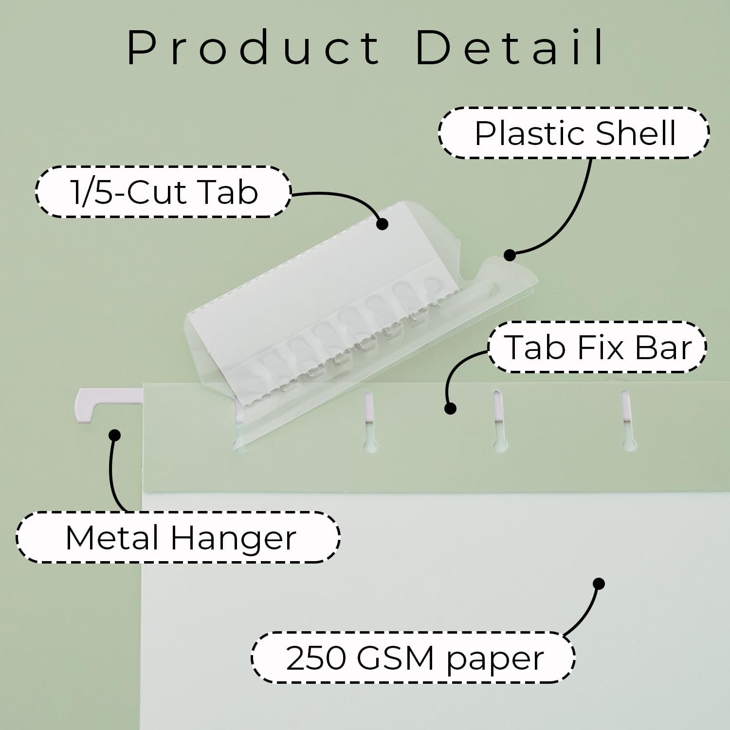 - Sorted Tabs - Each hanging folder features a 1/5-cut custom tab for hassle-free organizing and access to documents. Our pretty hanging folder can store bulky files, medical charts, or product manuals and keep files separate