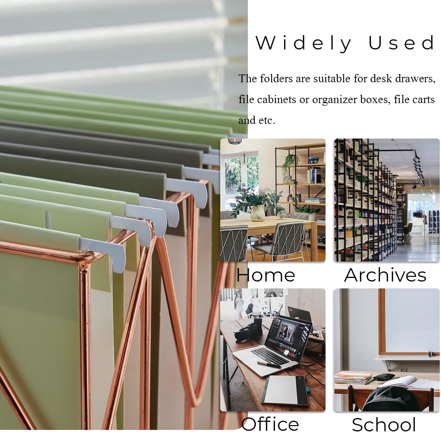 - Folder Dimension - Top metal bar's length is 12.75”, file folder size is 11.7" W x 9.3" H. You will receive 6 Gradient folders(3 Leaf Green x 2) + 6 customized plastic tabs. For further problem, please feel free to contact us