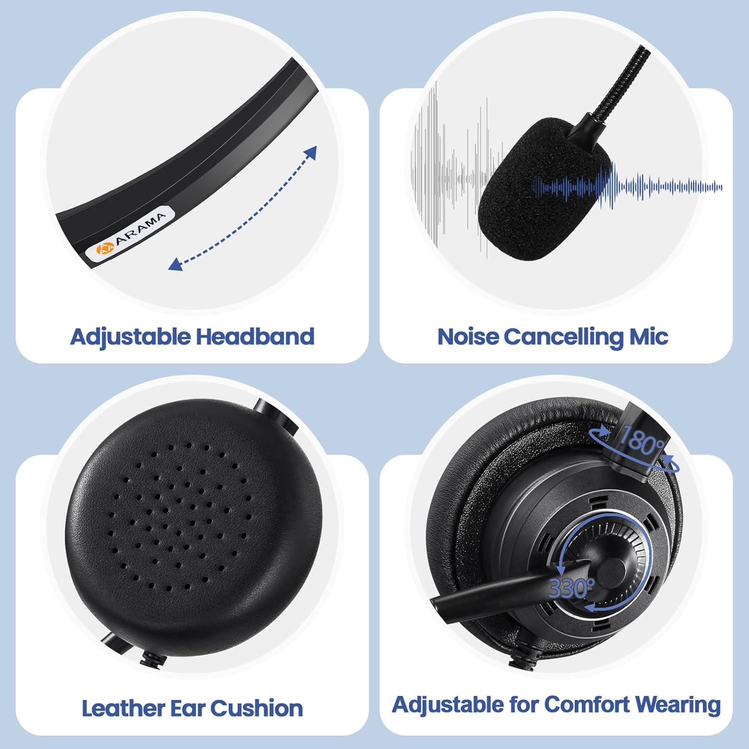 - ✅【Superb Audio Quality】: USB Headset with Noise-Canceling Microphone Features Wideband Audio and Enhanced Digital Signal Processing (DSP) delivers clear, natural, and rich audio. the Arama 202USB headset delivers a crystal-clear communication experience,Whether you work from home or in a busy office,Acoustic Shock Protection(ASP) to protect your hearing.