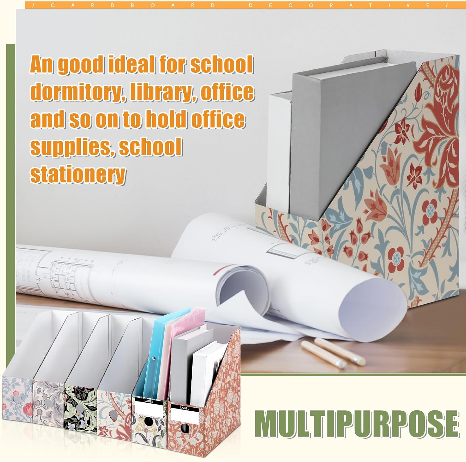 - Package Content: you will receive 6 pieces of decorative folders with 6 different patterns, with 12 label stickers, that are enough for you to put them in your workstation to store documents and files, and use labels to indicate the type and quantity of documents