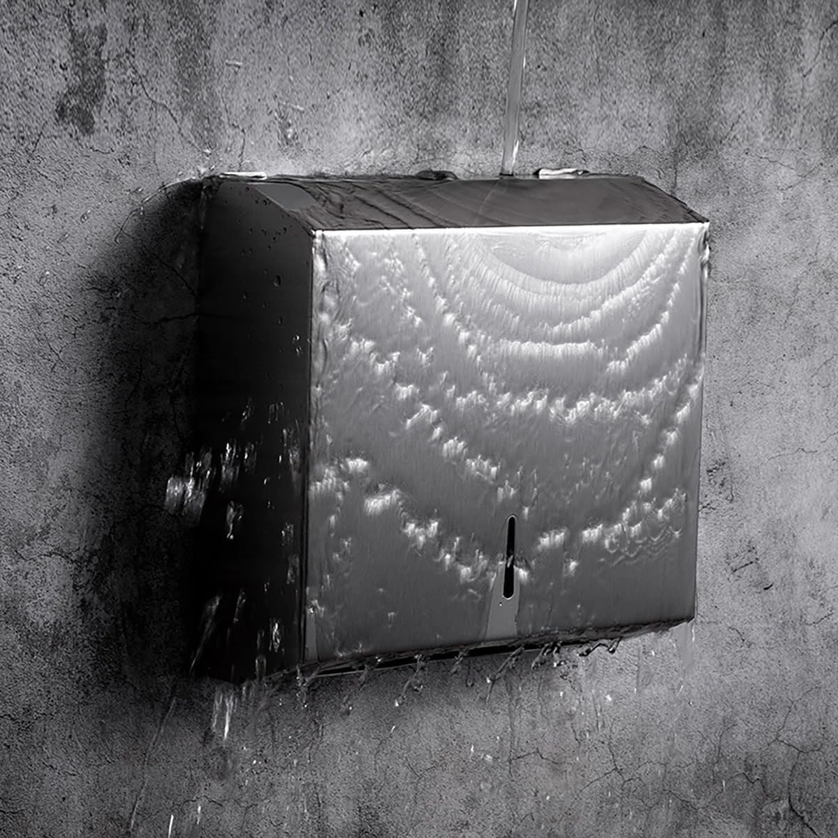 - 【Brushed Stainless Steel】 Made of 304-grade stainless steel, the paper towel dispenser is durable, easy to clean, and rust-proof. The brushed finish process gives it a sleek, modern look that will instantly elevate any bathroom. The polished edges and corners ensure that both hands and tissues are protected from any scratches.