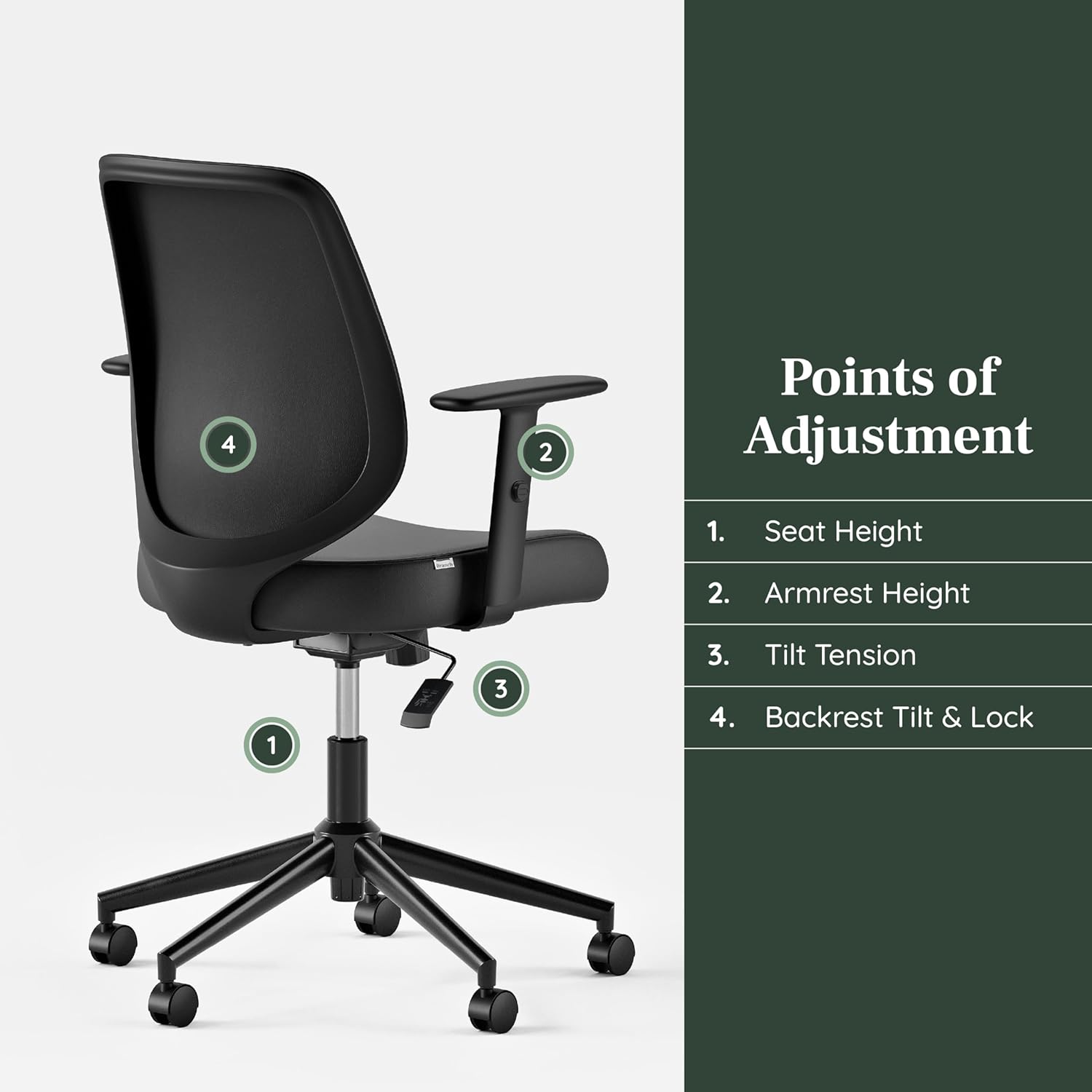 Branch Daily Chair - Vegan Leather Office Chair with Swivel, Lumbar Rest, and Adjustable Armrests - Comfortable Seating for Improved Posture and Productivity - Black