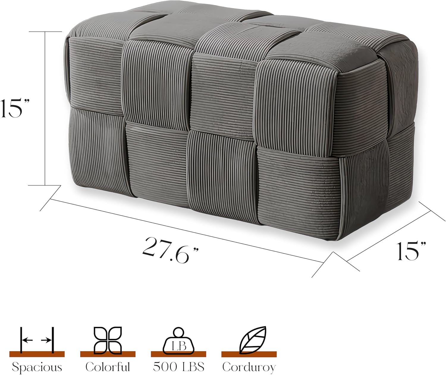 Ottoman Foot Rest Soft and Comfortable Ottoman Square Corduroy Woven Design Sofa Stool (Grey-L)
