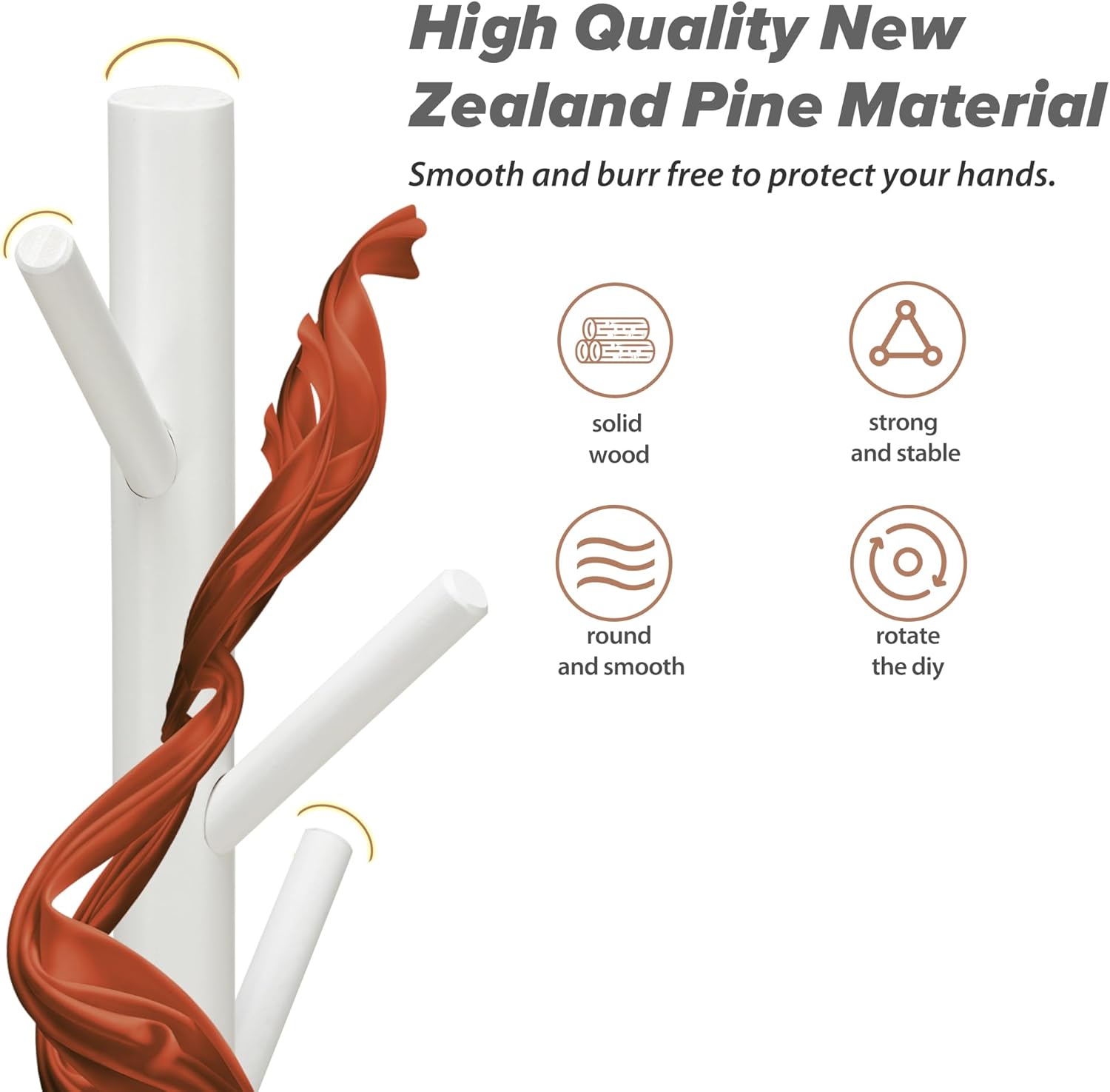 - 【8 Hooks & Save Space】The coat rack with 8 smooth hooks made of high quality New Zealand pine material, which can hang clothes, hats, bags, umbrellas and other items. The solid load-bearing performance is good.