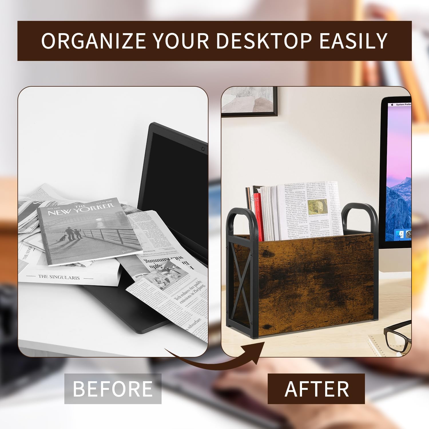 - Versatile Placement:The perfect dimensions of 11.5"x5"x9.5",designed specifically for seamless integration into various living spaces.From traditional to modern,harmonizes perfectly with diverse home styles.Its adaptable nature makes it an ideal addition to living rooms,bedrooms,home offices,or entryways.Providing a practical yet sophisticated storage solution for magazines,books,and newspapers.