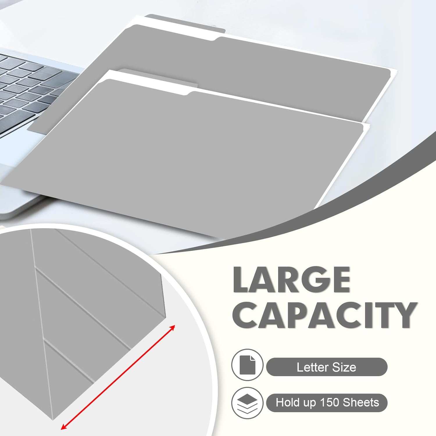 File Folder, PANDRI 120 Pack File Folder, 1/3 Cut Tab, Letter Size, Filing Folder for Office School Business, Grey