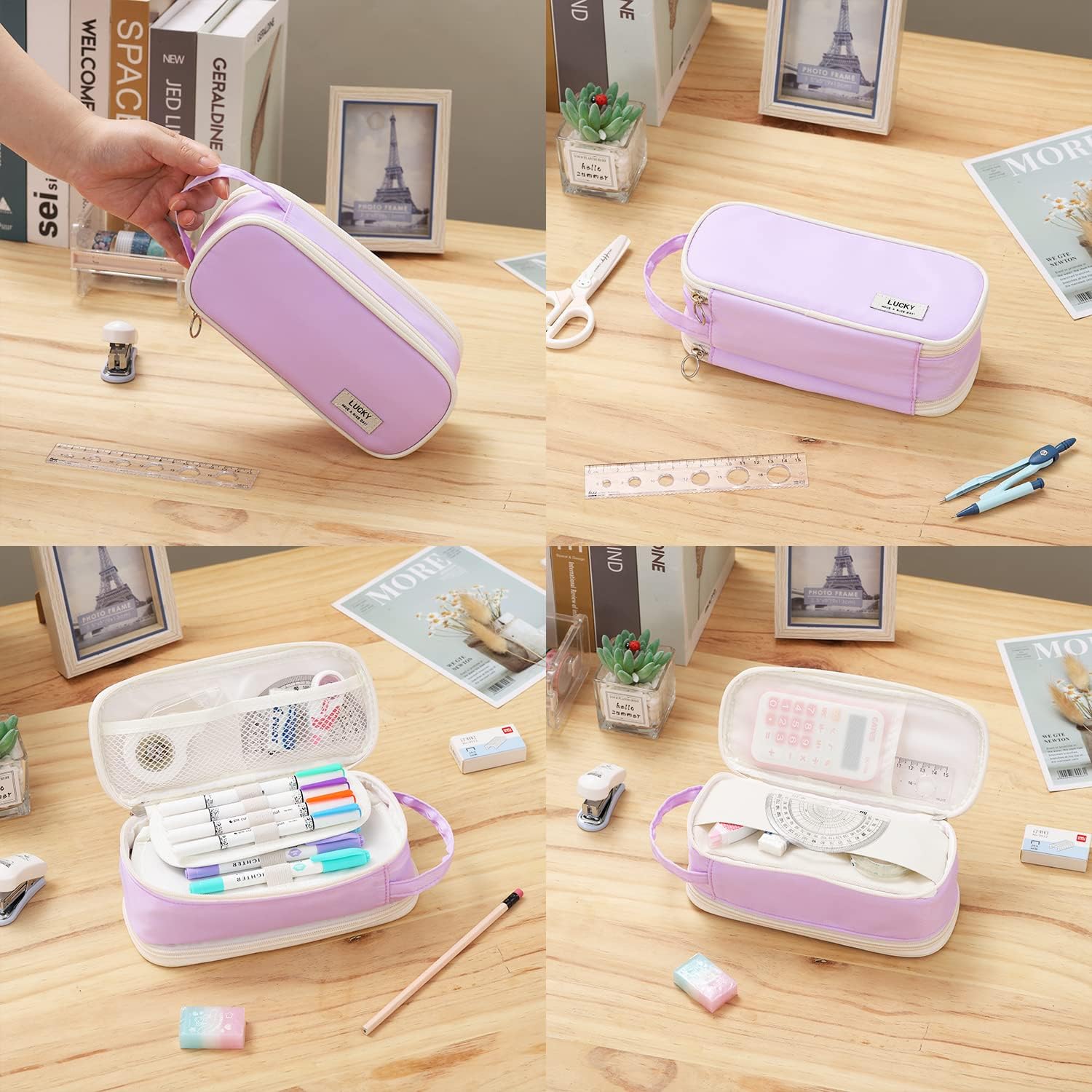 Dugio Big Pencil Case for Girls Teens Kids Zipper Pencil Pouch with Handle Organizer Pencil Bag Aesthetic Pencil Box for School Purple