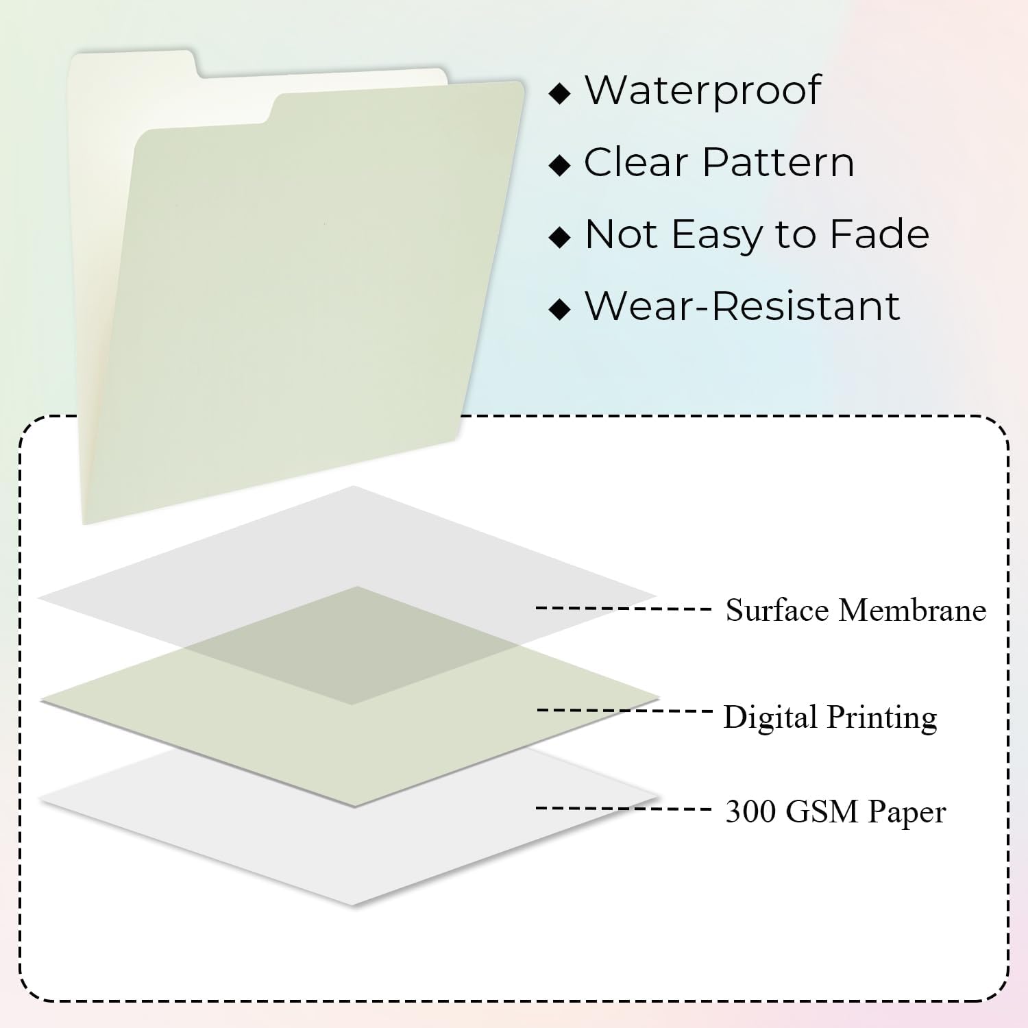 - Heavyweight Material - Decorative file folders are made of 300 GSM recycled paper. Surface membrane technology makes the digital printing pattern of pretty file folders not easy to fade, waterproof, and more wear-resistant