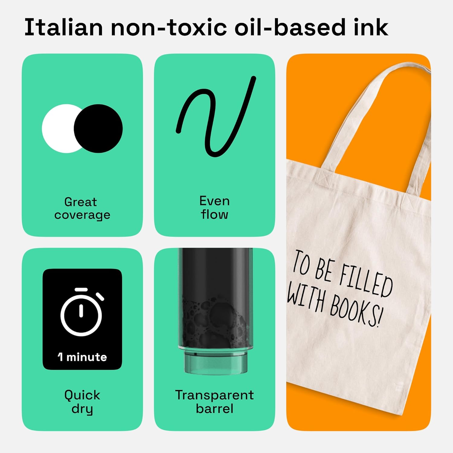- Multiple Surfaces: Use these oil paint pens as oil markers for plastic and glass or as oil based fabric markers for clothes. Each black pen is water-resistant. They’re also good for leather, vinyl, or epoxy resin. And the nibs are solid, even on rocks!