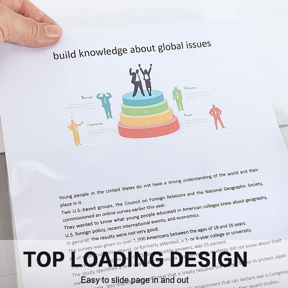 - HIGH TRANSPARENCY: Clear page protectors offer complete transparency for easy viewing, at the same time, the slightly textured can reduce glare to care for your eyes. Our plastic paper sleeves won't lift or transfer ink and contents are easy to read.