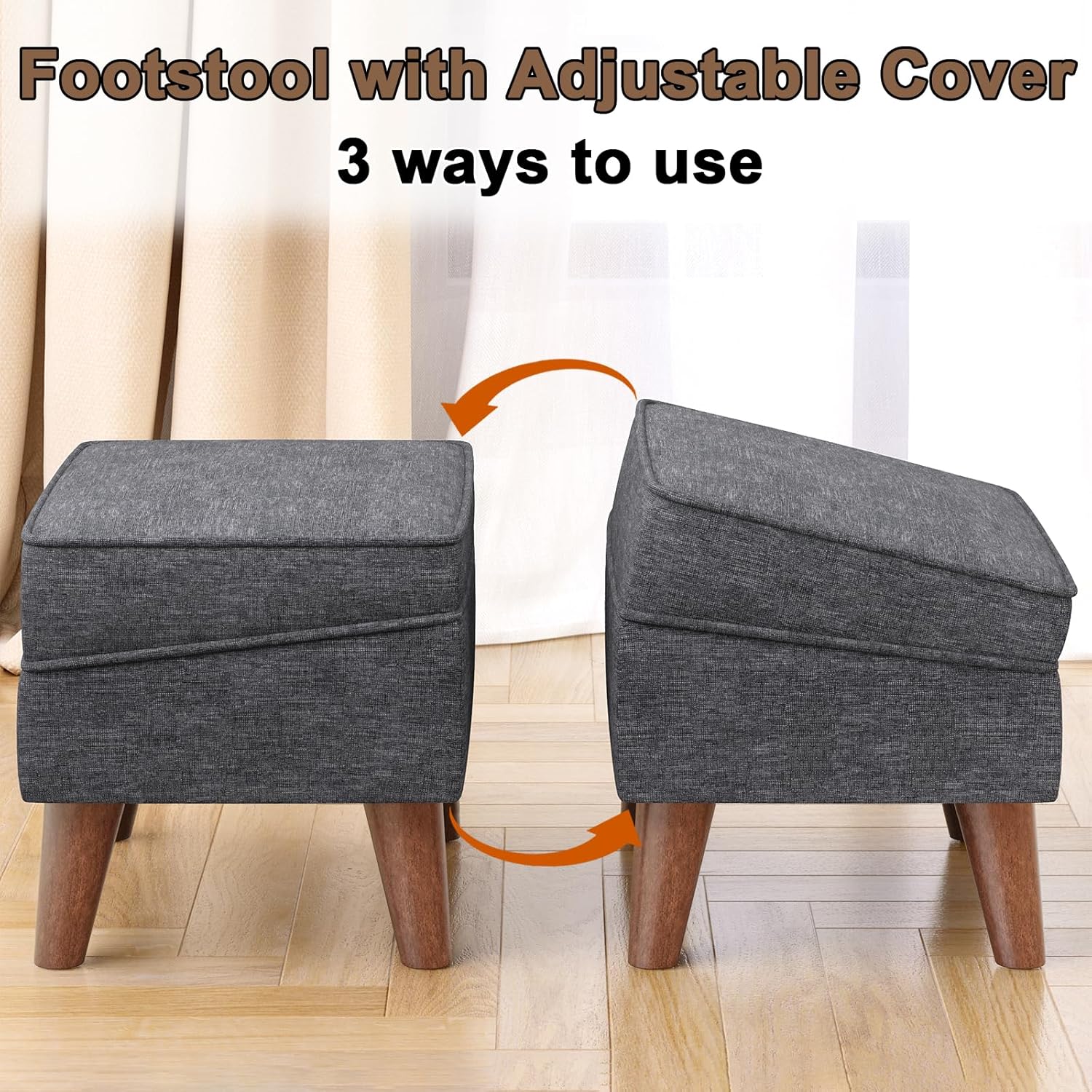 Small Footstool Ottoman with Storage, Ottoman Foot Rest, Modern Foot Stool with Adjustable Lid and Sturdy Wood Legs for Living Room, Bedroom, Couch, Enterway, Light Gray