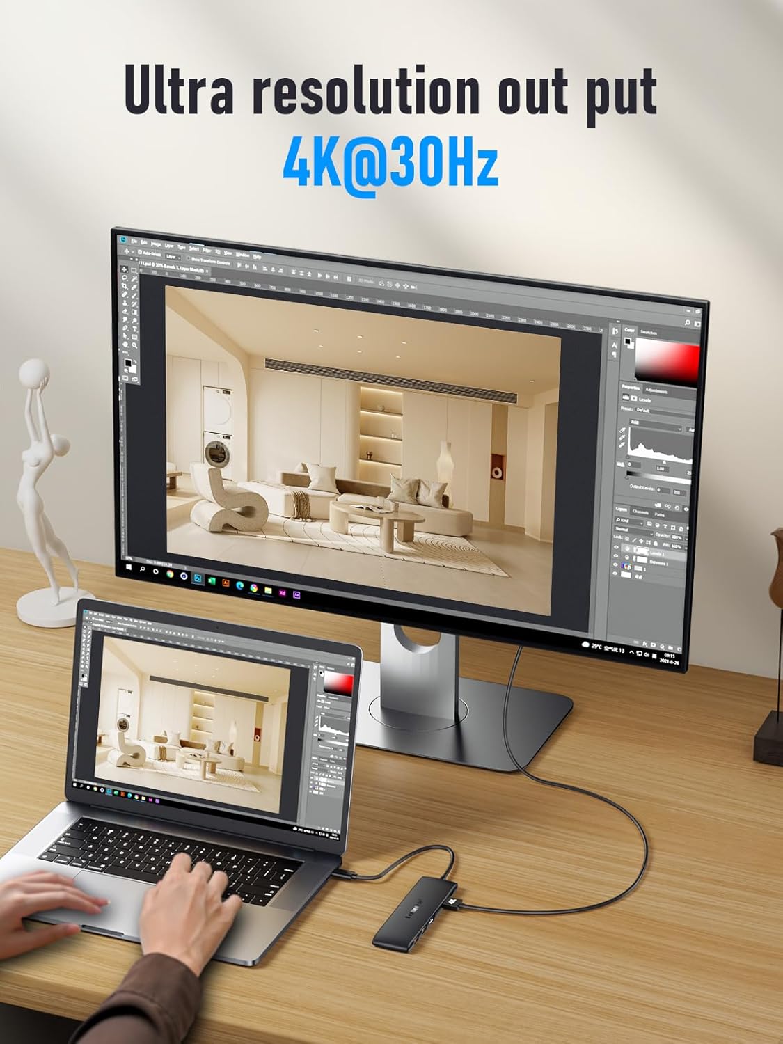 - [Plug and Play]: Simply plug and play without additional drivers or software. What You Get: 1*USB C Hub, 1*User manual. 24-month warranty. 24h friendly customer service and email support. Note:this package not include power cable, hdmi cable, usb devices.