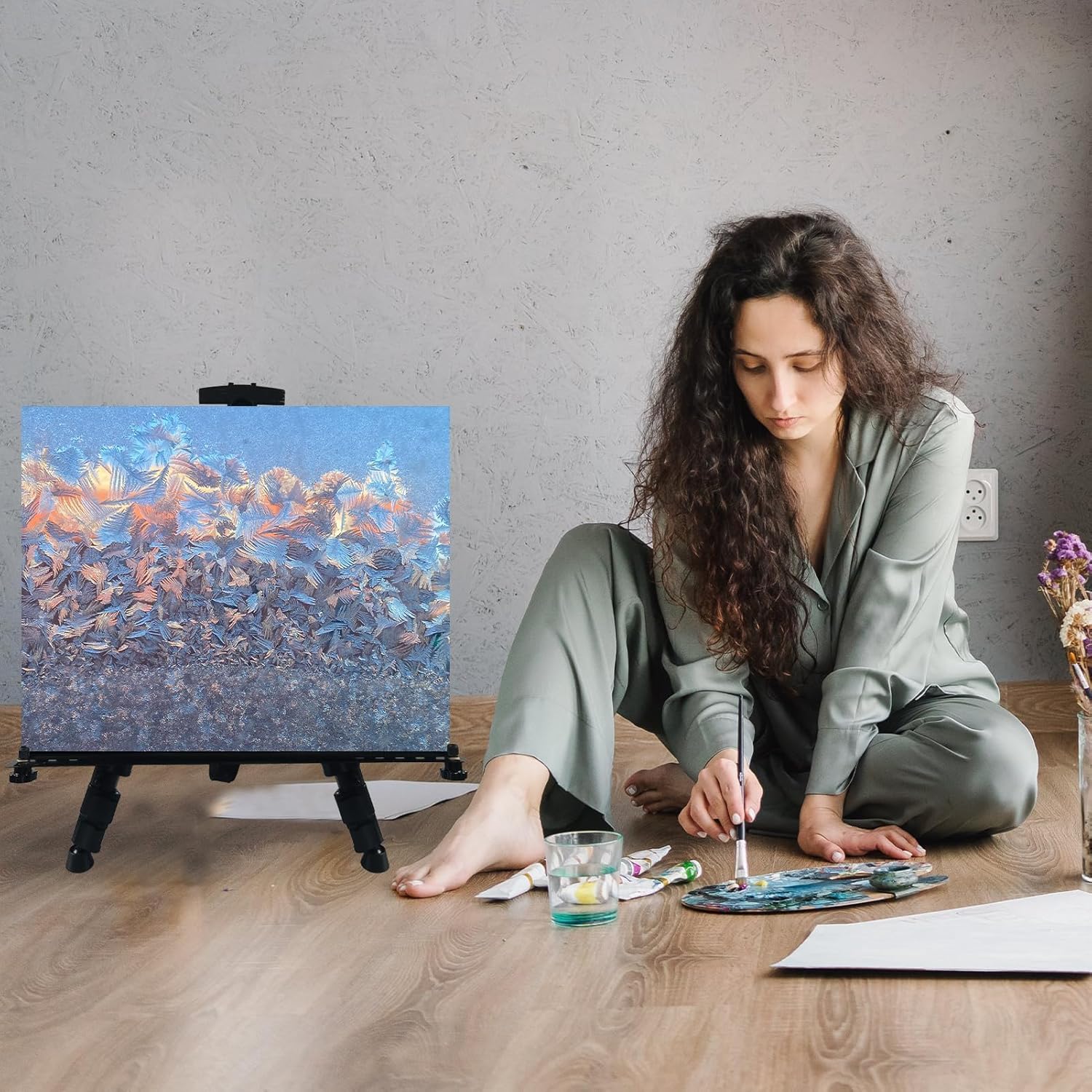 - 1. INNOVATIVE CROSS-BAR DESIGN FOR ENHANCED STABILITY: Our black art easel features an innovative cross-bar mechanism that locks the canvas securely in place, eliminating any wobbling or sliding and allowing you to focus on creating your masterpiece. This extra stability ensures that your artwork stays exactly where you need it to be, whether you're painting fine details or broad strokes.