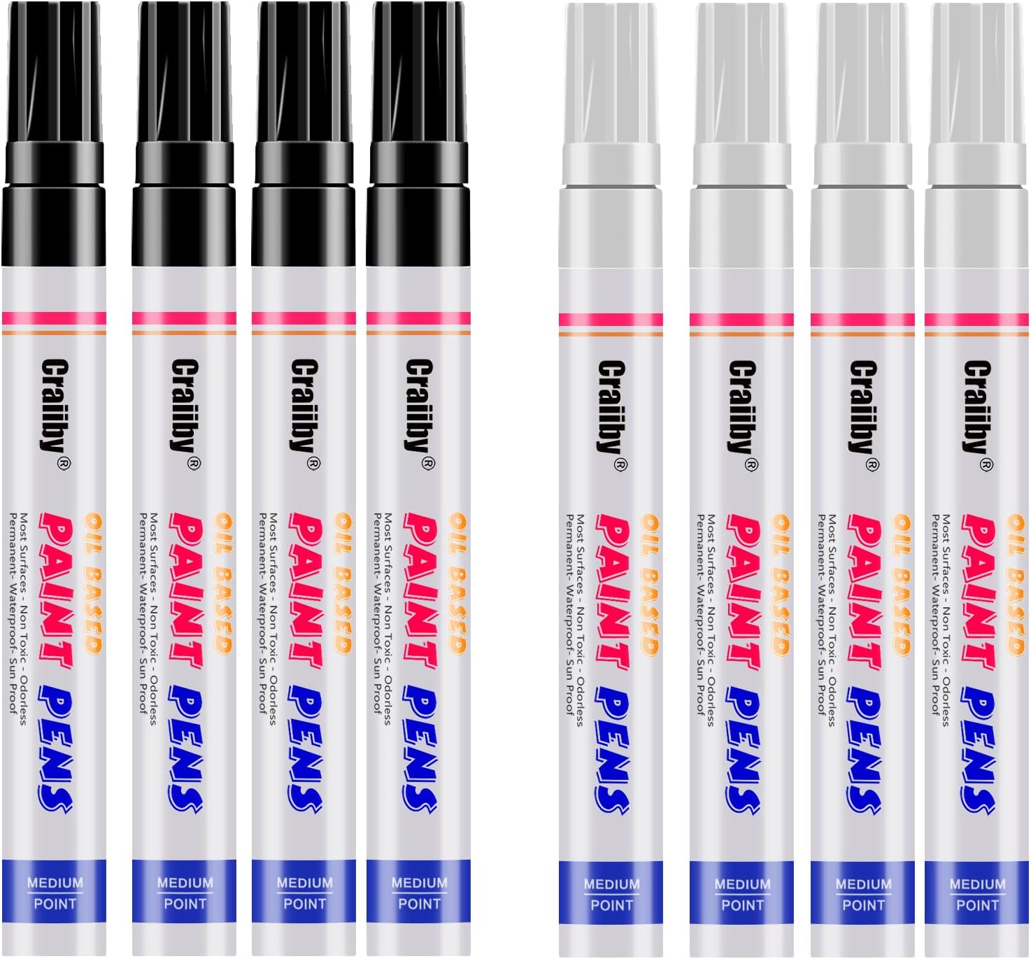 White & Black Paint Markers, 8 Pack Oil-Based Waterproof Quick Dry and Permanent Paint Pen Set for Rocks Painting, Wood, Plastic, Canvas, Glass, Mugs, Metal, Tire, Stone, DIY Craft