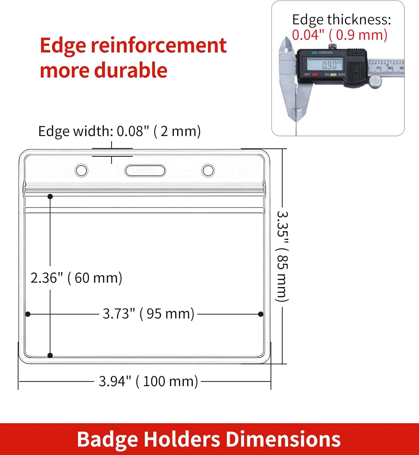 - Practical Dimensions: Our horizontal badge holder has external dimensions of 3.94" x 3.35" . It can hold up to approximately 6 credit card-size cards. Perfect for organizing your cards