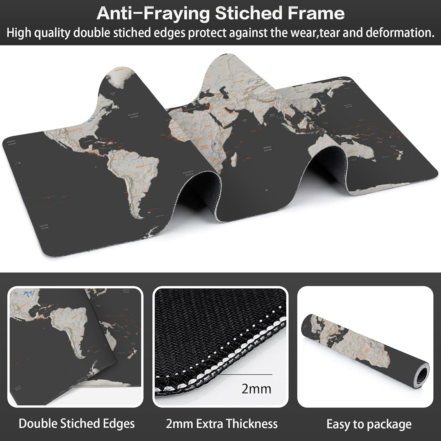 Desk Mat, Vintage World Map Extended Large Gaming Mouse Pad XXL, Non-Slip Rubber Base Stitched Edges Long Computer Keyboard Desk Pad Mouse Mat for Home Office Gaming 35.4"X15.7"