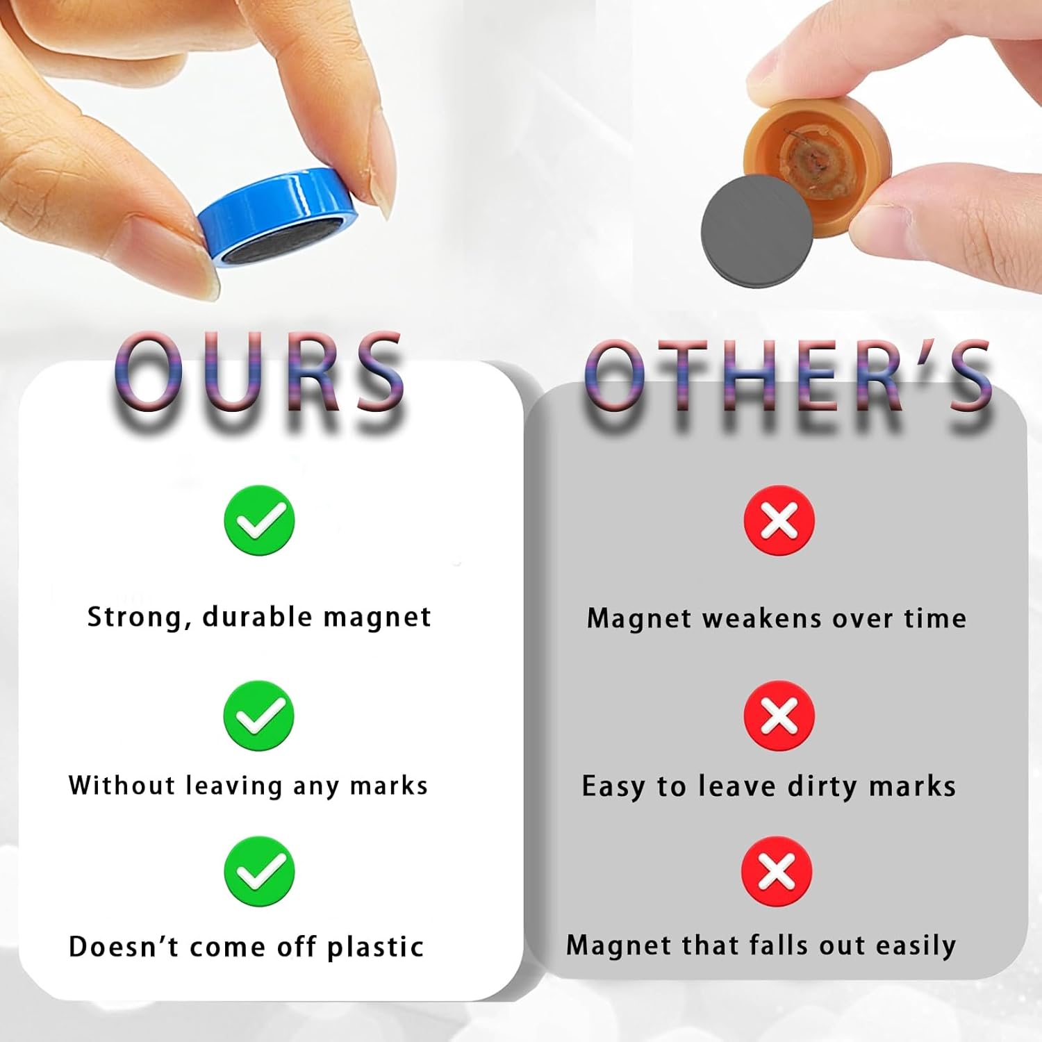 - 【Strong Fridge Magnets】This white board magnets set has a larger magnetic contact area, holds better and more durable than other tiny magnets. Thanks to their strong adhesion, these fridge calendar magnet provide a secure and reliable hold on any metal surface. Our fridge magnets adult ensure that your important notes and pictures stay securely in place, without falling or sliding off. If you wish to hang a heavier object, please make sure you use 2+ small strong magnets