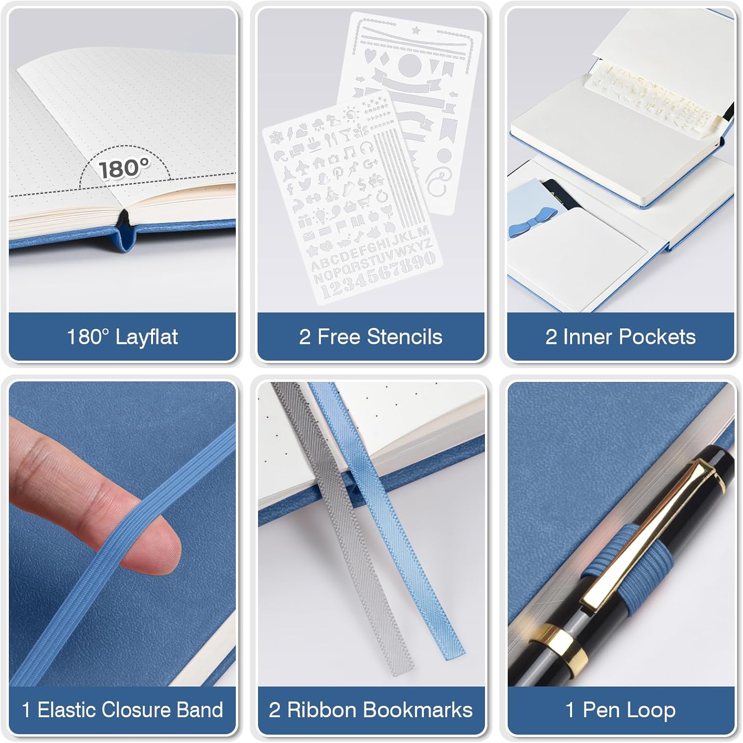 - 【Thoughtful Accessories】Complete with practical accessories, each bullet dotted journal book includes 2 pockets, 2 bookmark ribbons, 1 elastic band, and 1 pen loop. Additionally, each set comes with 2 free dot grid journal stencils featuring various graphics, letters, and numbers, enhancing creative possibilities for planning, documenting work, or artistic endeavors.