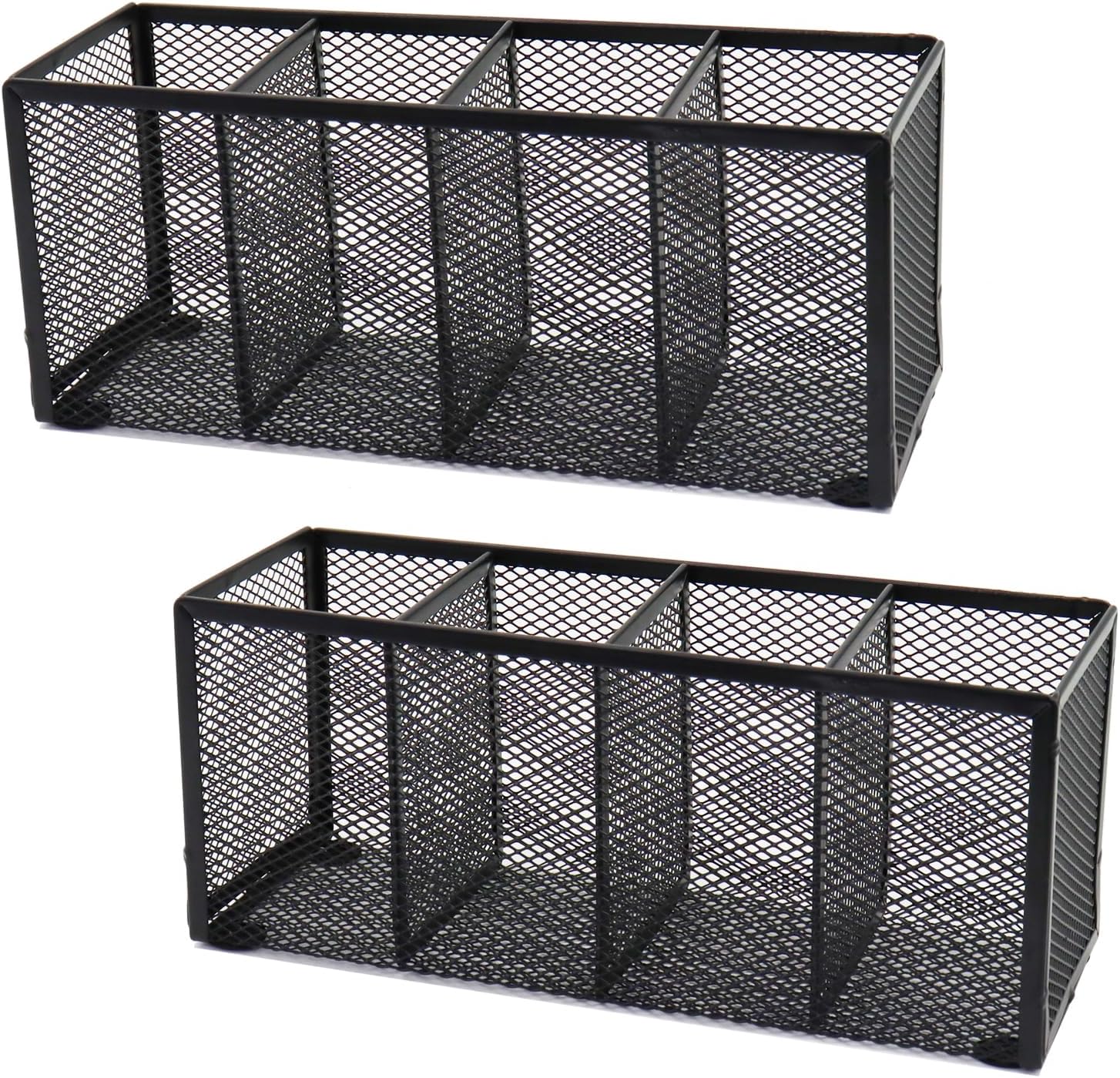 2PCS Black Mesh Pen Pencil Holder, Metal Desk Organizer Desktop Stationery Office Supplies Acessories Storage Stand, 4 Compartments Brushes Holder for Home School Classroom Teachers