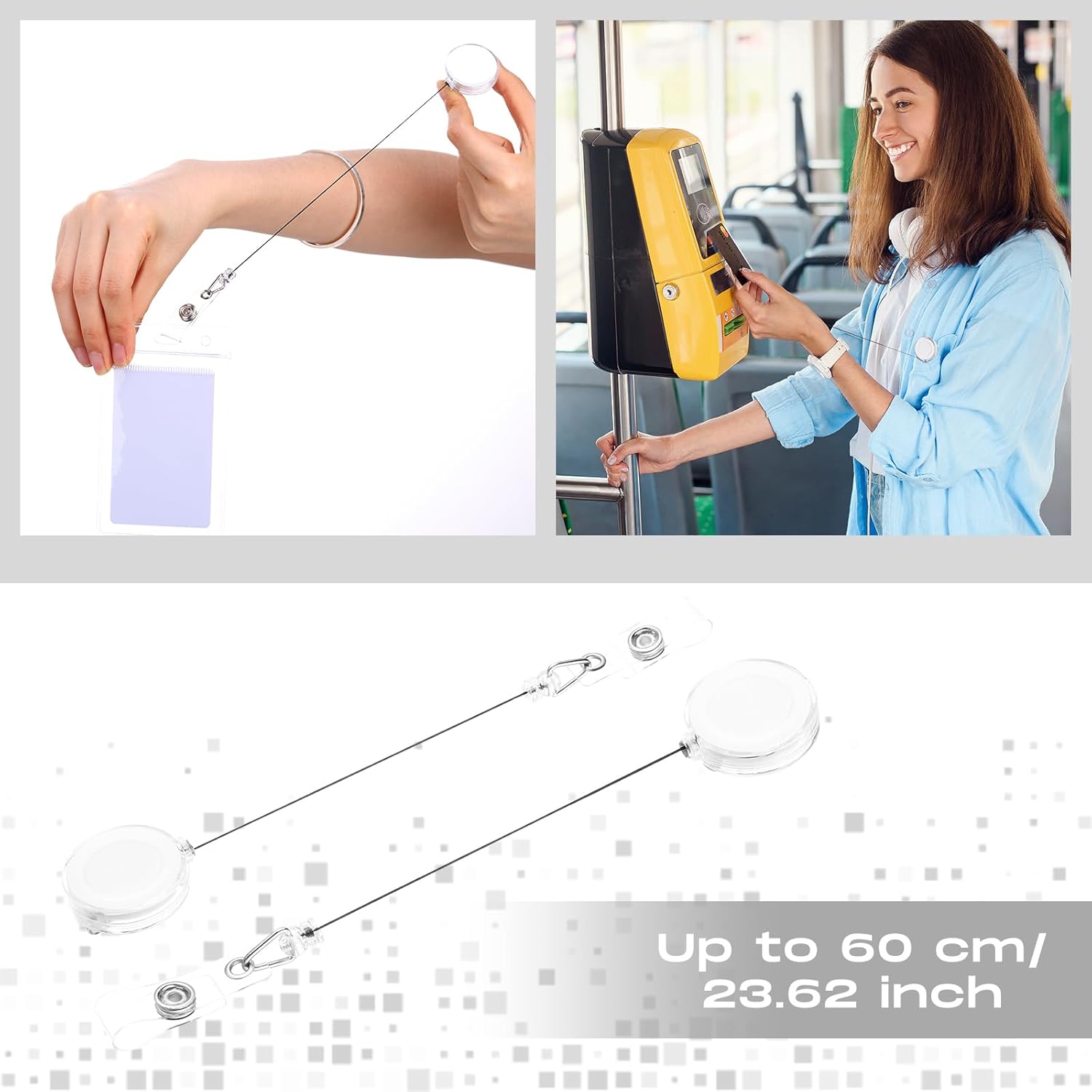 - Easy to use: a transparent card holder strap with button makes the badge reel easy to connect to most card holders and key rings; These retractable ID badge reel clips are very suitable for maintenance and security personnel