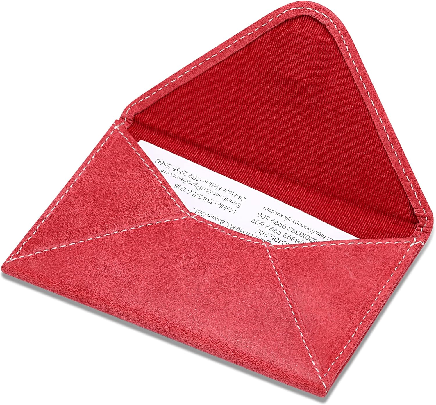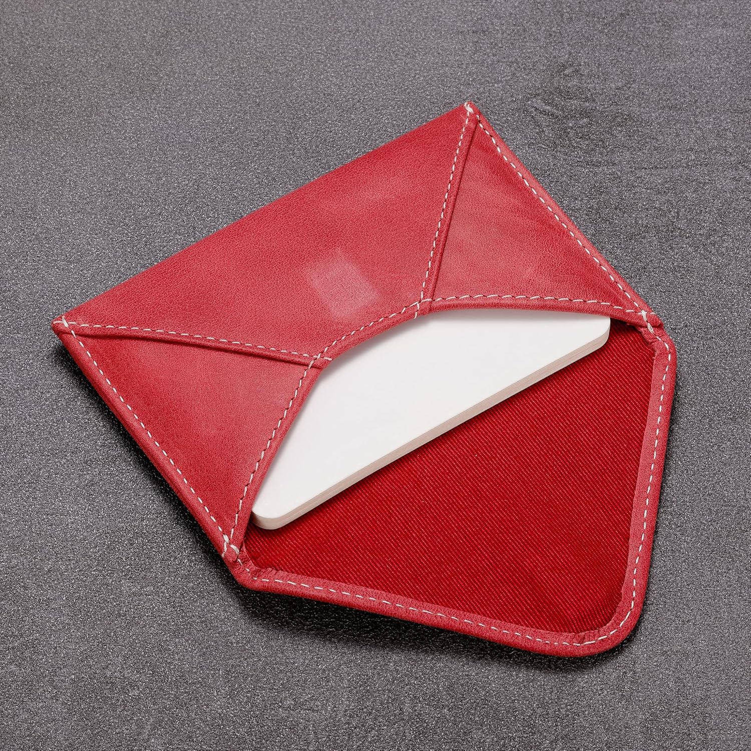 HISCOW Envelope Business Card Case with Magnet Closure - Italian Calfskin (Vintage Red)