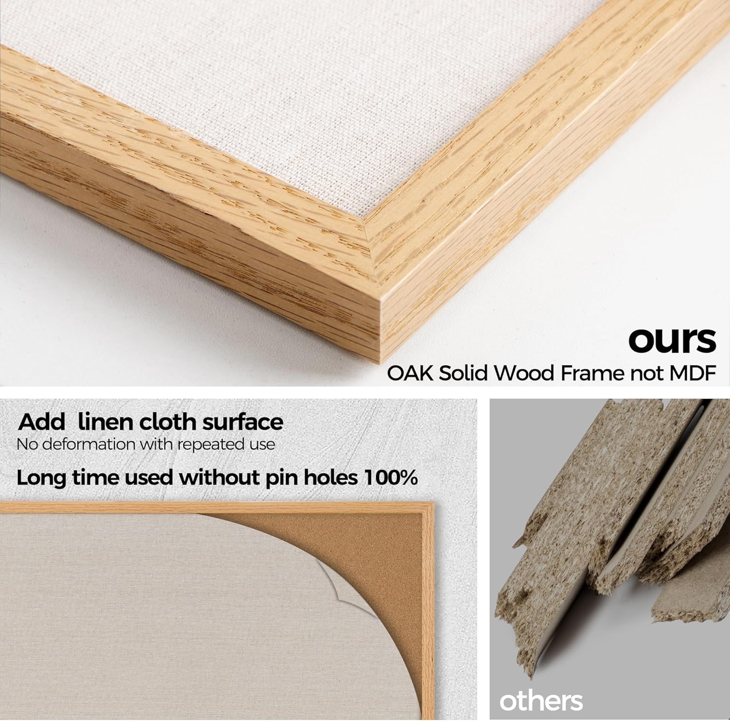 - Oak Frame Material: Our cork boards for walls is made of 100% pine wood which has well self-healing ability and repairability. The pin board features a four-ply splint design that is strong and thick enough not to be punctured by thumbtacks.