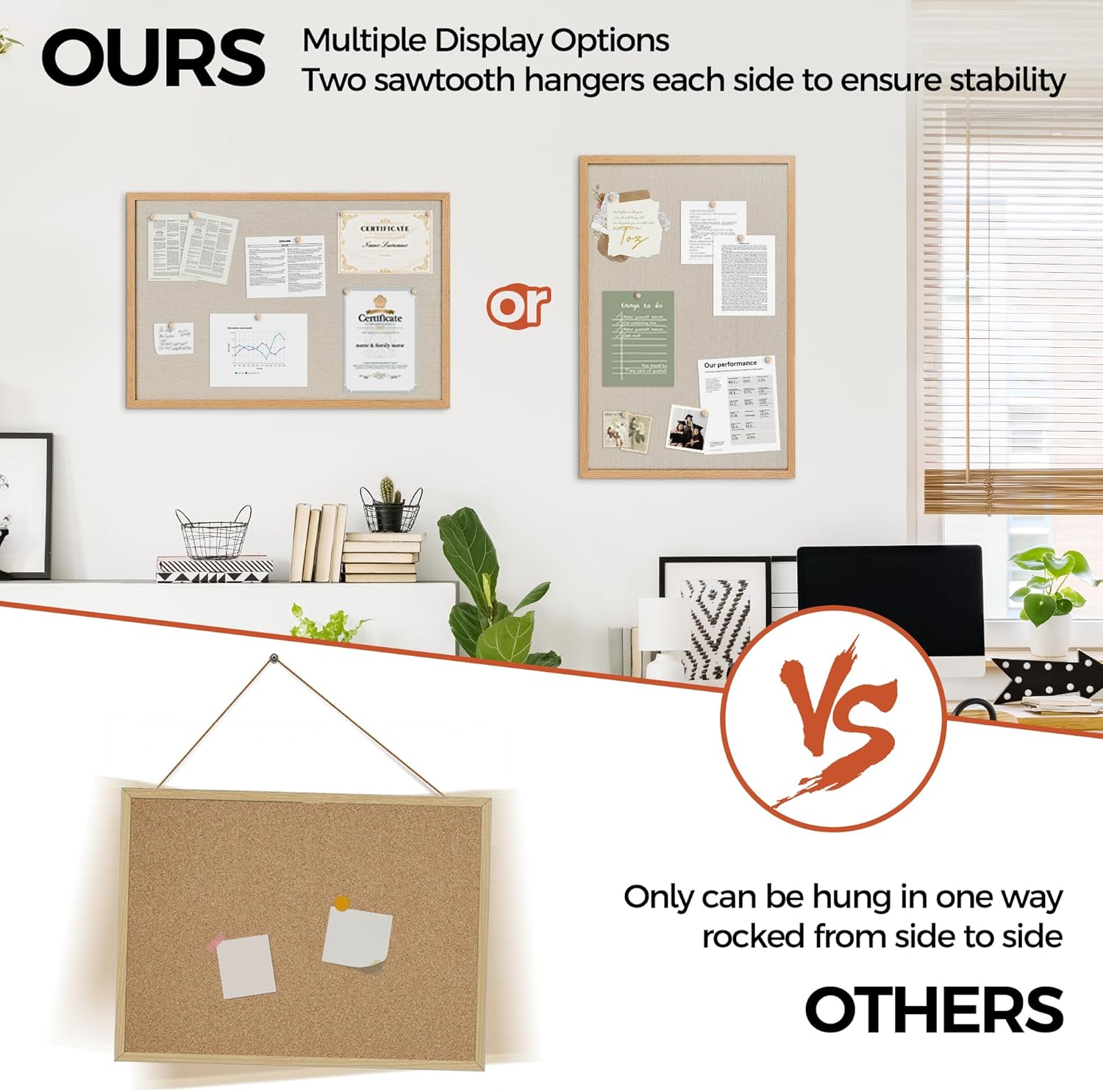 - Unique Design: Easily customize the board orientation to fit your space. Natural cork bulletin board add a classic look to your office or home. Both strong and stylish, it will be a great addition to your space.