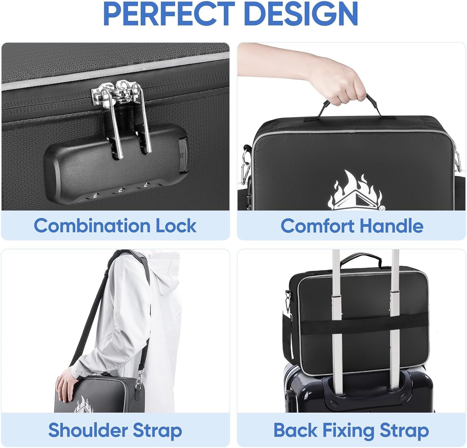 - Unique Design: The large and medium-sized fireproof boxes feature sliding rails for easy document adjustment, PVC anti-slip pads for stability, and reflective strips for visibility in low light; The smaller fireproof bag includes a reinforced handle and adjustable shoulder strap for easy carrying