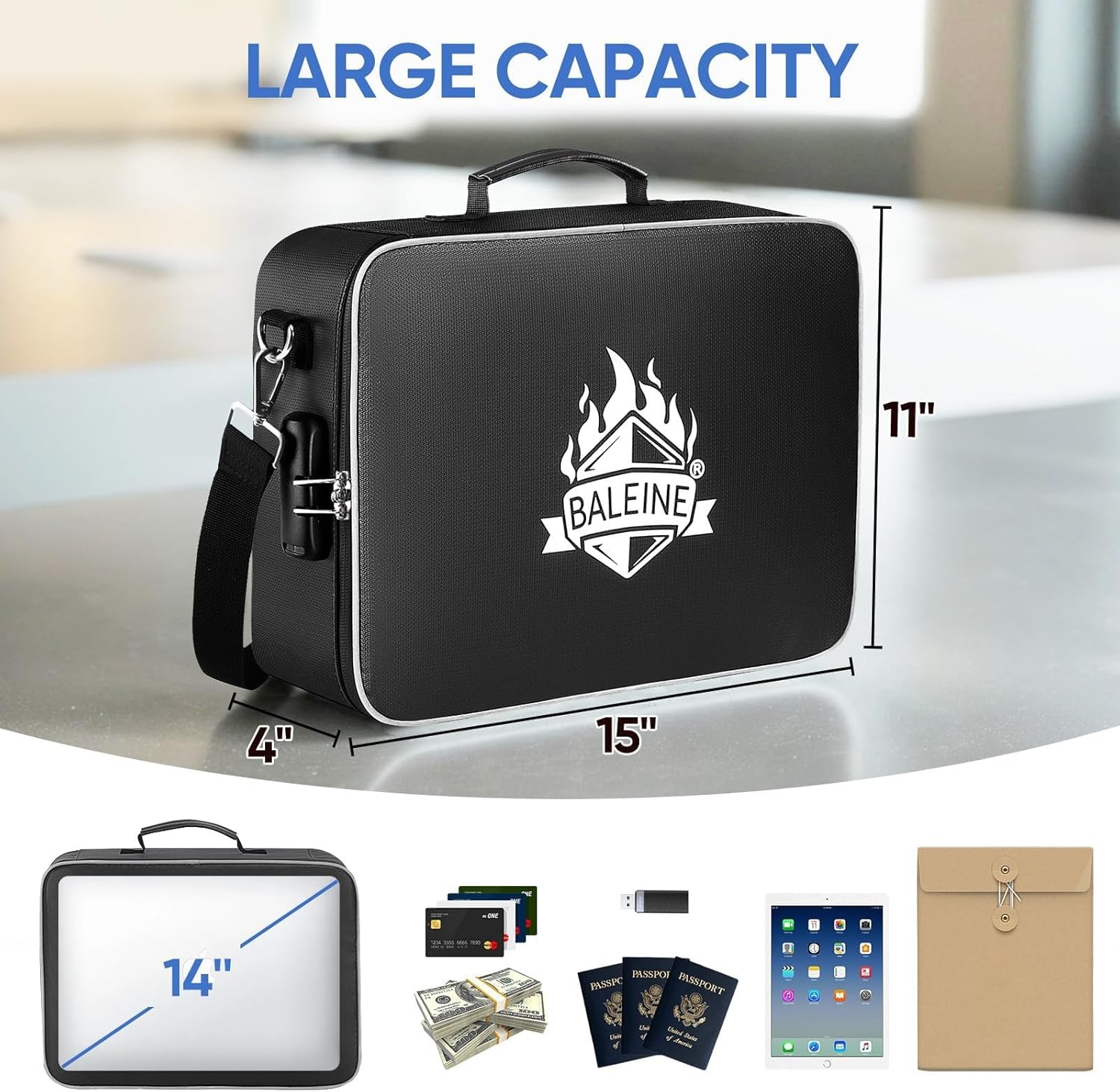 - Security Lock: BALEINE file boxes feature upgraded waterproof dual zippers and a combination lock, protecting your documents and valuables from unauthorized access and water damage