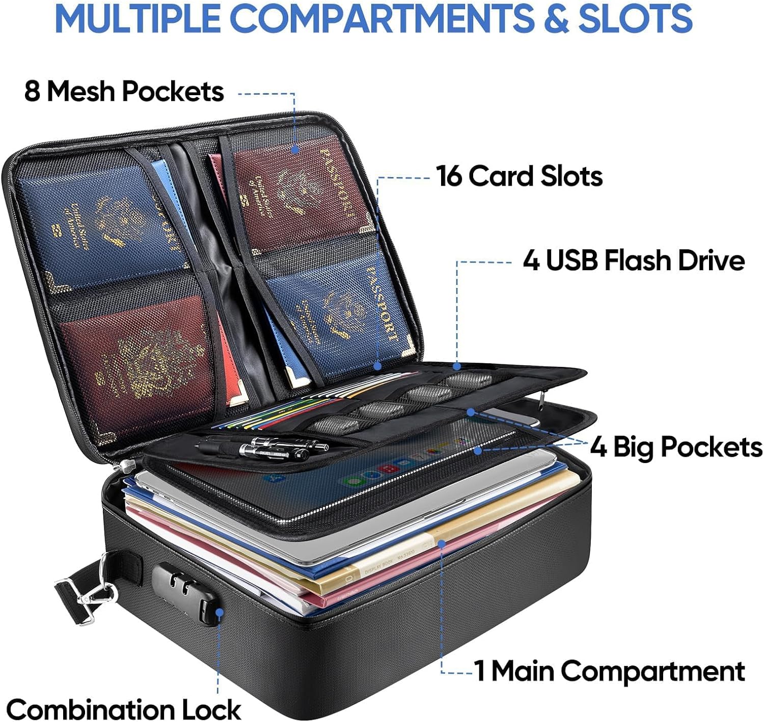 - Large Capacity: Available in three sizes, the large document box (16''x12.5''x11.5'') can hold legal-sized and letter-sized documents, the medium document box (12.5"x10.5"x6") is fit for letter size files, and it includes mesh pockets of various sizes; The smaller document bag (15''x11''x4'') features a three-layer design with 12 mesh compartments of different sizes