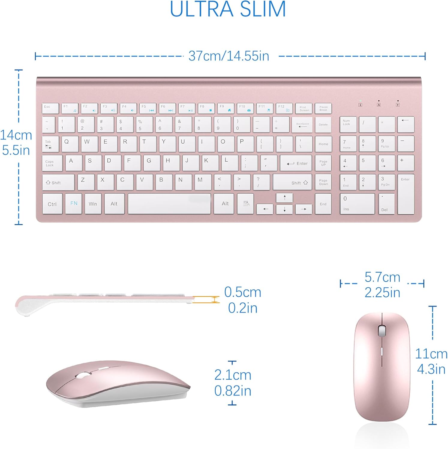 Wireless Keyboard and Mouse Ultra Slim Combo, TopMate 2.4G Silent Compact USB 2400DPI Mouse and Scissor Switch Keyboard Set with Cover, 2 AA & 2 AAA Batteries,for PC/Laptop/Windows/Mac-Rose Gold White