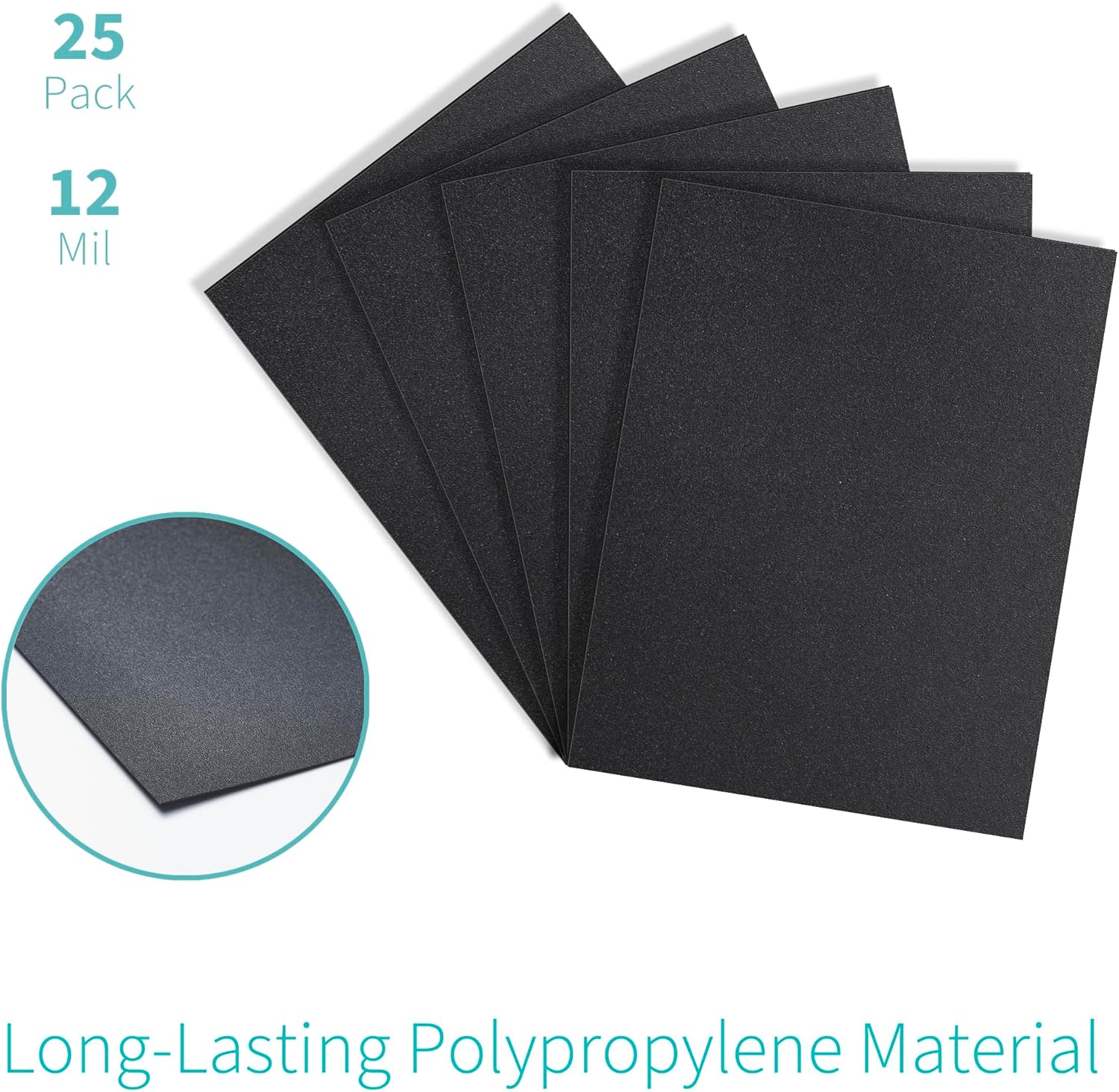 Binditek 25 Pack 12 Mil Sand-Textured Polycover, Midweight Binding Front and Back Covers, Lightly Sanded Finish, 8-1/2" x 11", Square Corners, Un-Punched, Black, Office Supplies