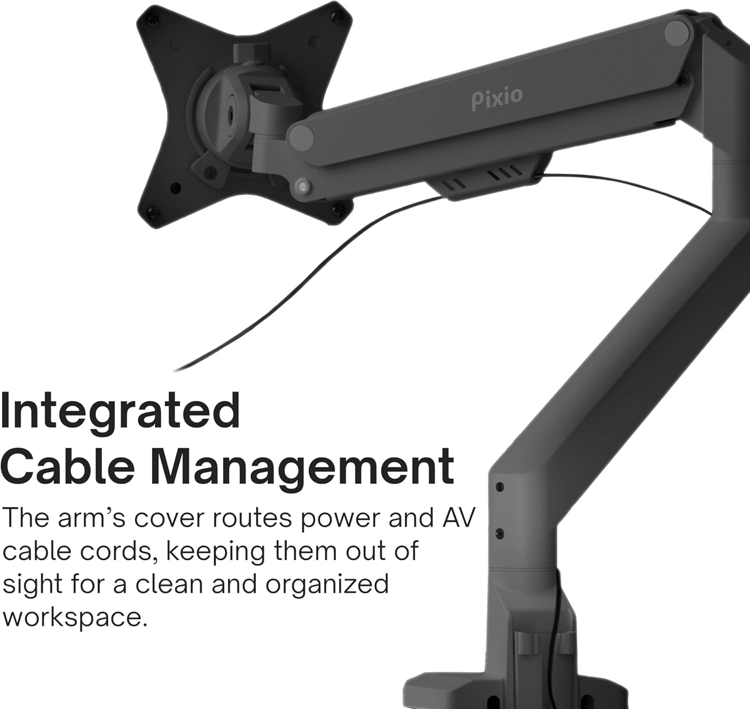 Pixio PS1S Wave Black Single Monitor Arm Stand Desk Mount - Fits up to 32 inches Monitors and up to 19.8lbs. VESA Compatibility and Integrated Cable Management