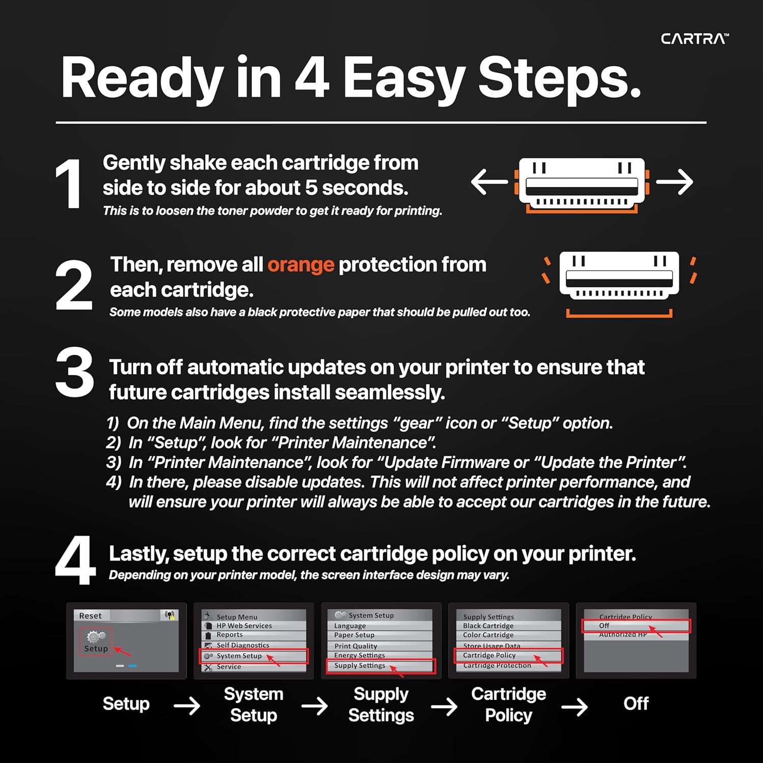 - Superior quality prints: Cartra 212A toner cartridges are rigorously tested for color accuracy and purity, producing bold, bright, and precise prints every time, which is essential for professional quality documents and presentations.