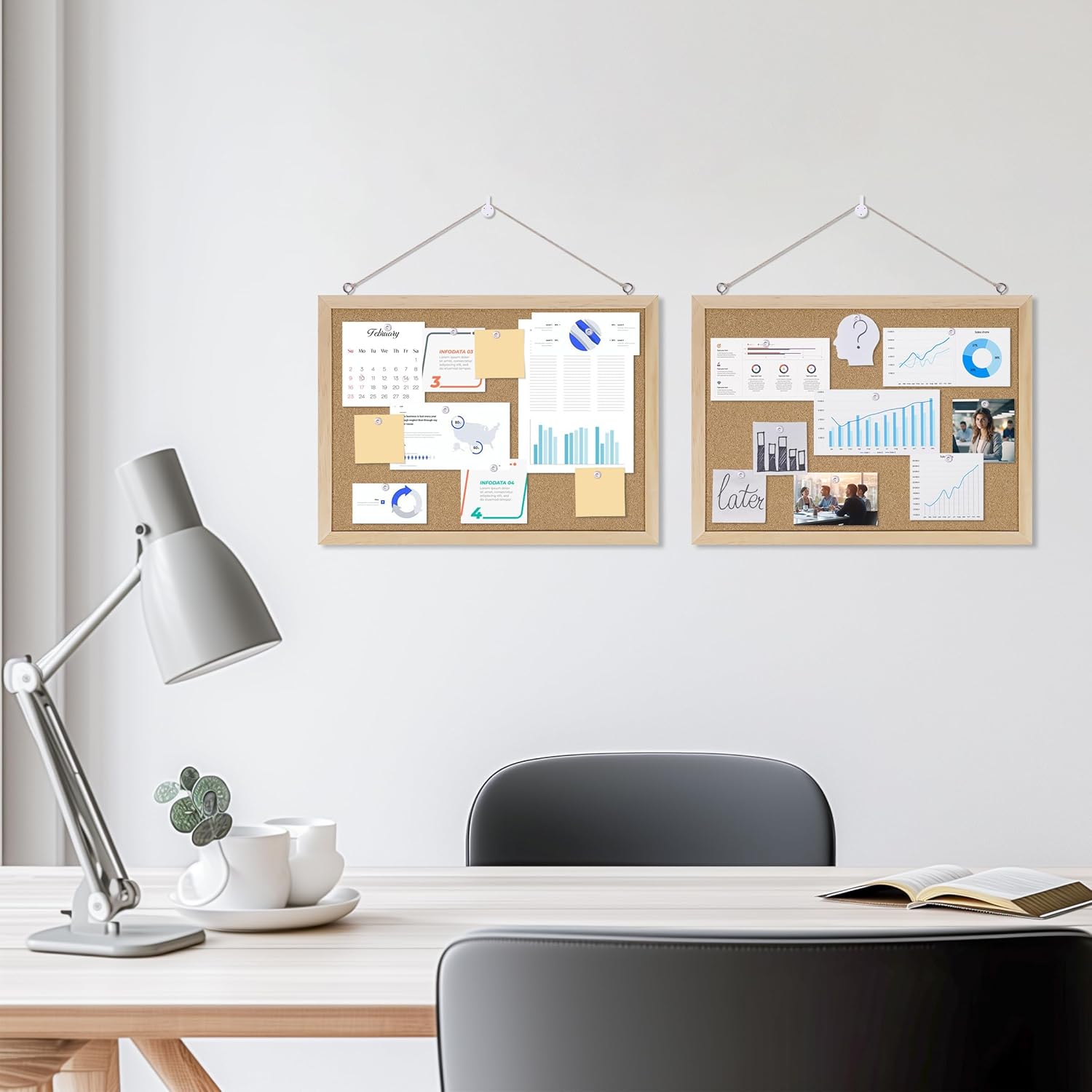 - 【Material】:The cork boards for walls is made of Oak wood which has well self-healing ability and repairability. The pin board features a four-ply splint design that is strong and thick enough not to be punctured by thumbtacks.