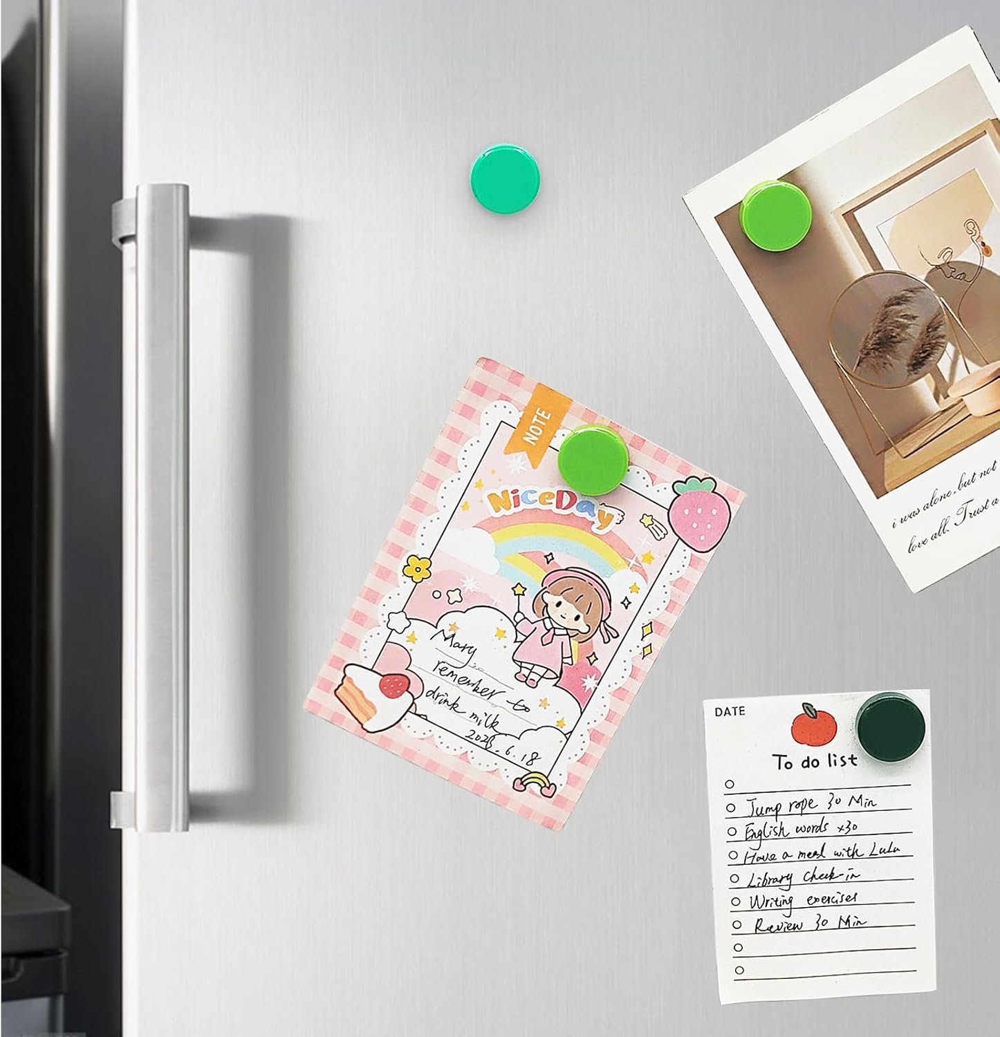 - 【Decorative magnets - perfect gift】 This small round magnets is colorful and eye-catching, gives your decoration a bright color and makes your life more exquisite. These white board magnets can not only decorate your home or office, but also help organize your clutter and create more space to make your environment cleaner and more attractive. These fridge magnet calendar also make a perfect gift for friends, loved ones, children and colleagues or teachers.
