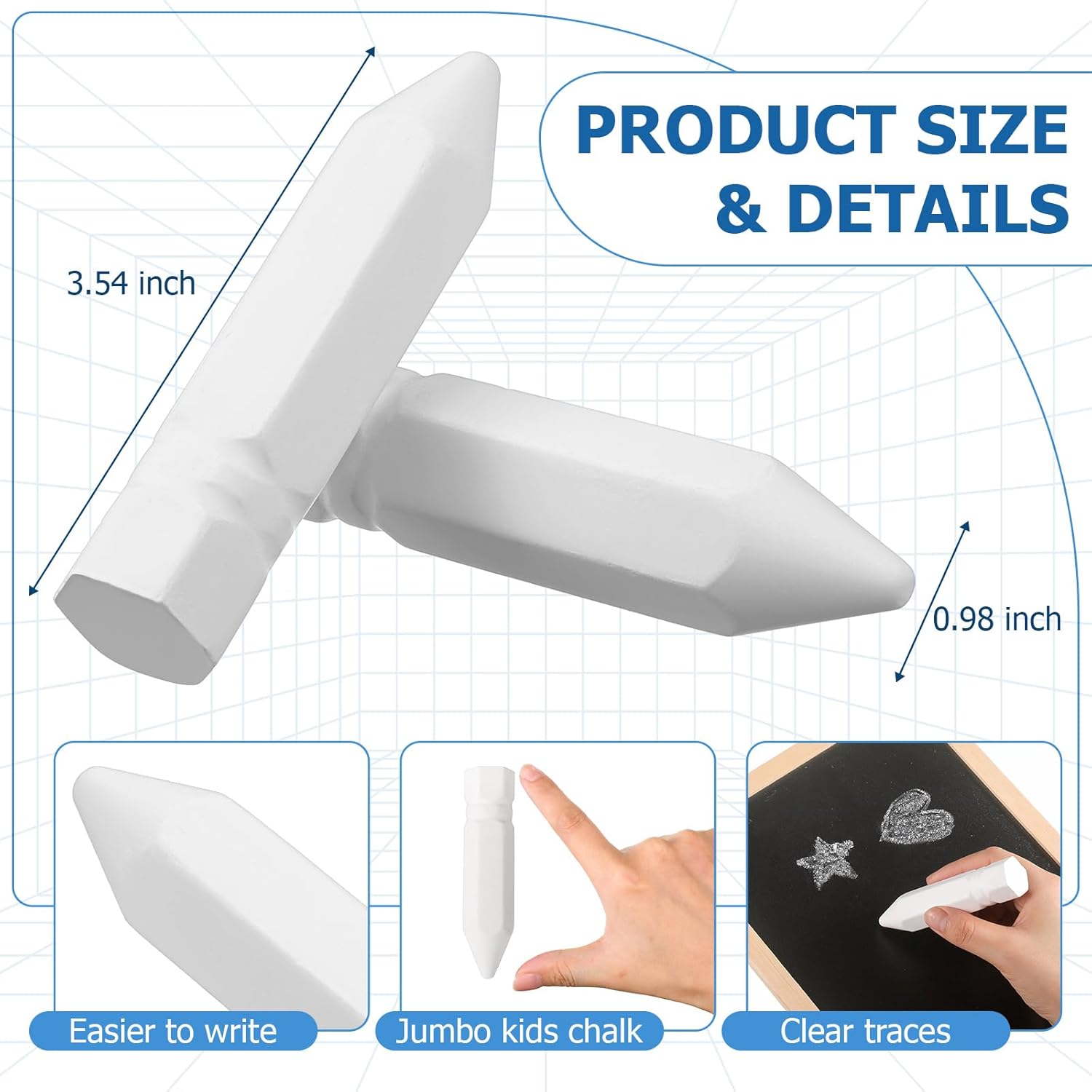 - Reliable Material: our large chalk for kids is made of plaster powder and paint, durable and trustworthy, with fine workmanship, not easy to break or fade, each chalk will last a long time and will not need to be replaced often, saving you time