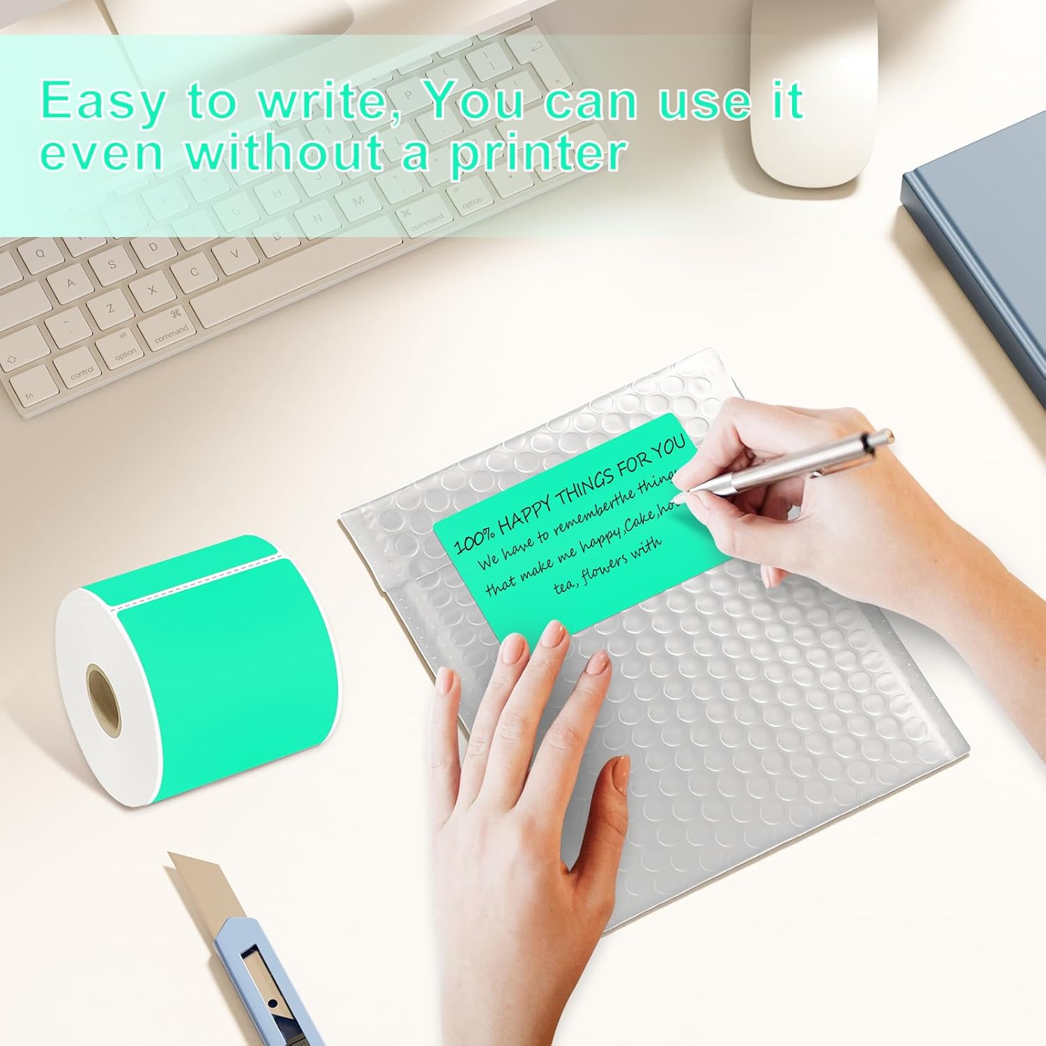 3 X 5 Inch Printable Waterproof Rectangle Color Coding Labels, 300 Per Roll Adhesive Color Coding Stickers for Bar-Codes, Address, Small Business Labeling, Inventory (Light Green)