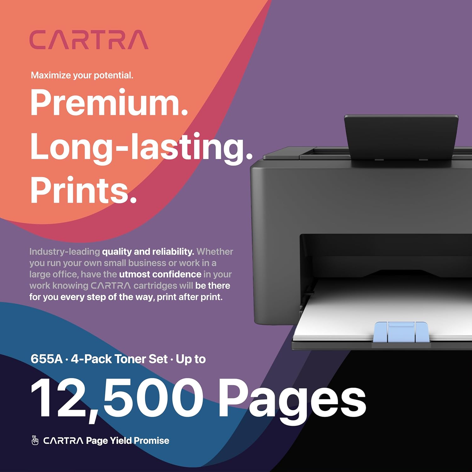 CARTRA 655A 4 Pack Toner Cartridge Replacement CF450A CF451A CF452A CF453A for HP Color Laserjet Enterprise M652n M652 M53dn M653x M653 MFP M681dh M682z Series Printer | Black Cyan Yellow Magenta.