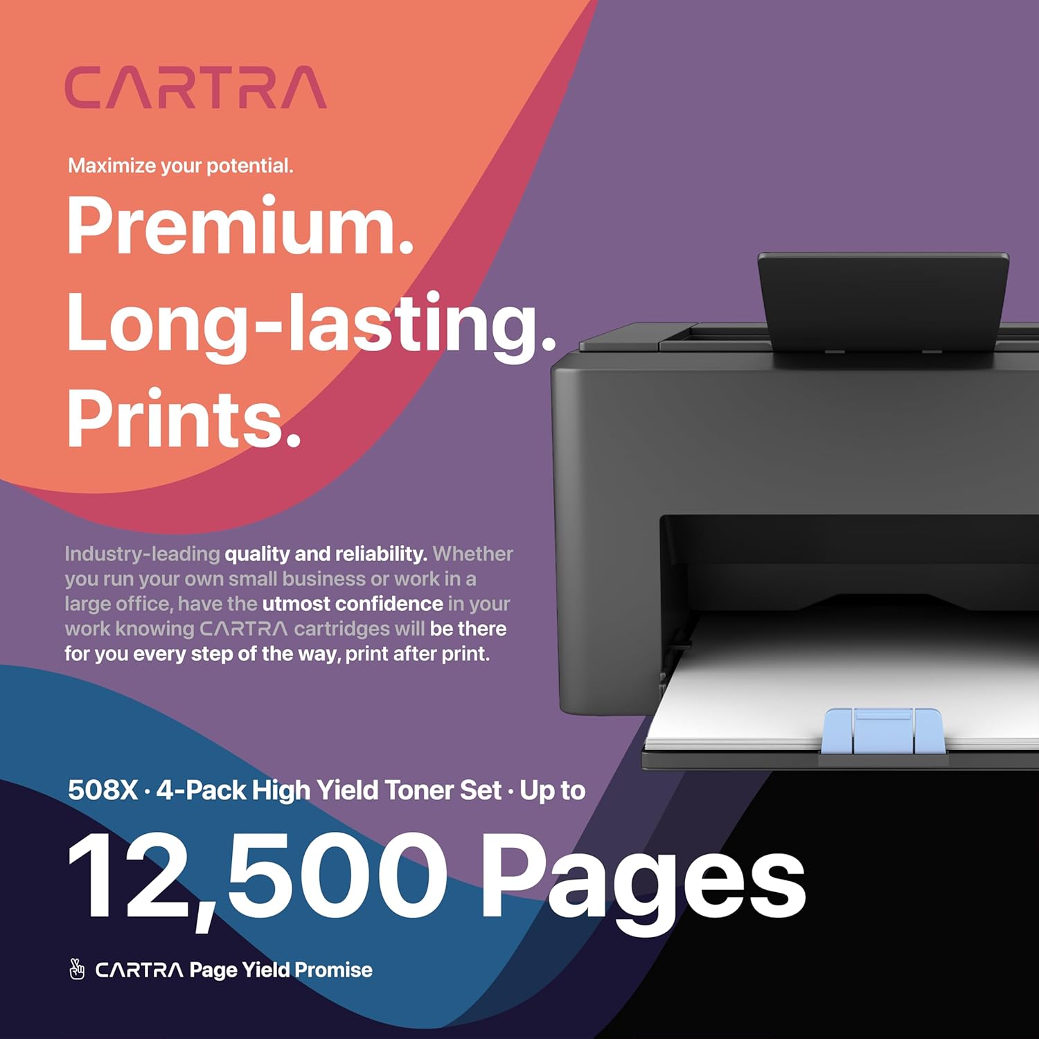 - Crafted from recycled materials, CARTRA’s 508A toner delivers top print quality with eco-friendly impact. Backed by US-based support and a commitment to customer care, it reflects our dedication to sustainability, reliability, and excellent service