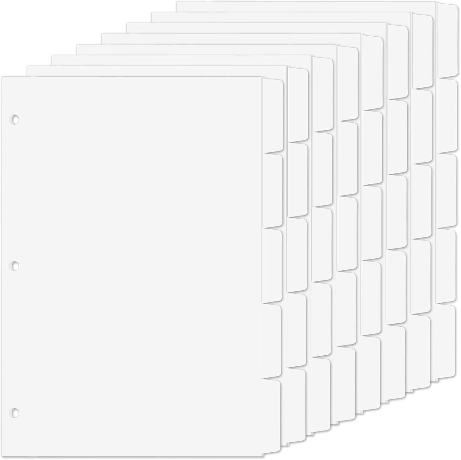 Binder Dividers for 3 Ring Binder, 1/5 Cut Tabs, Letter Size, Blank Write On Page Dividers with 5 Big Tabs for School Office Home, 8 Sets, 40 Dividers, White