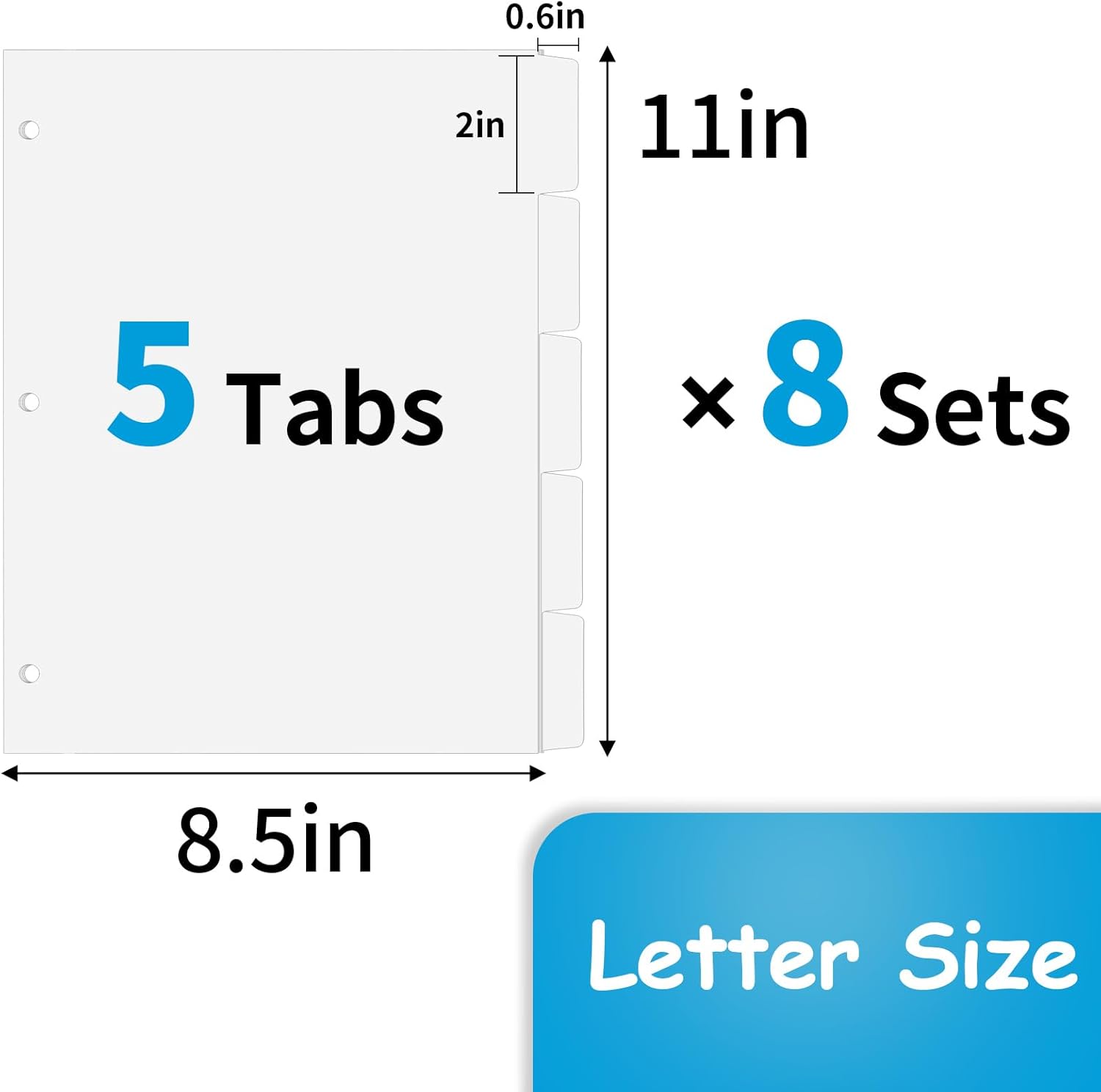 - Binder Dividers Size: Binder index dividers size is 8.5 * 11 inches, fit for letter-size documents(8.5"x11") for file classification management. Big Tabs help you see and write easier. Easy to load, no need for hole-punching