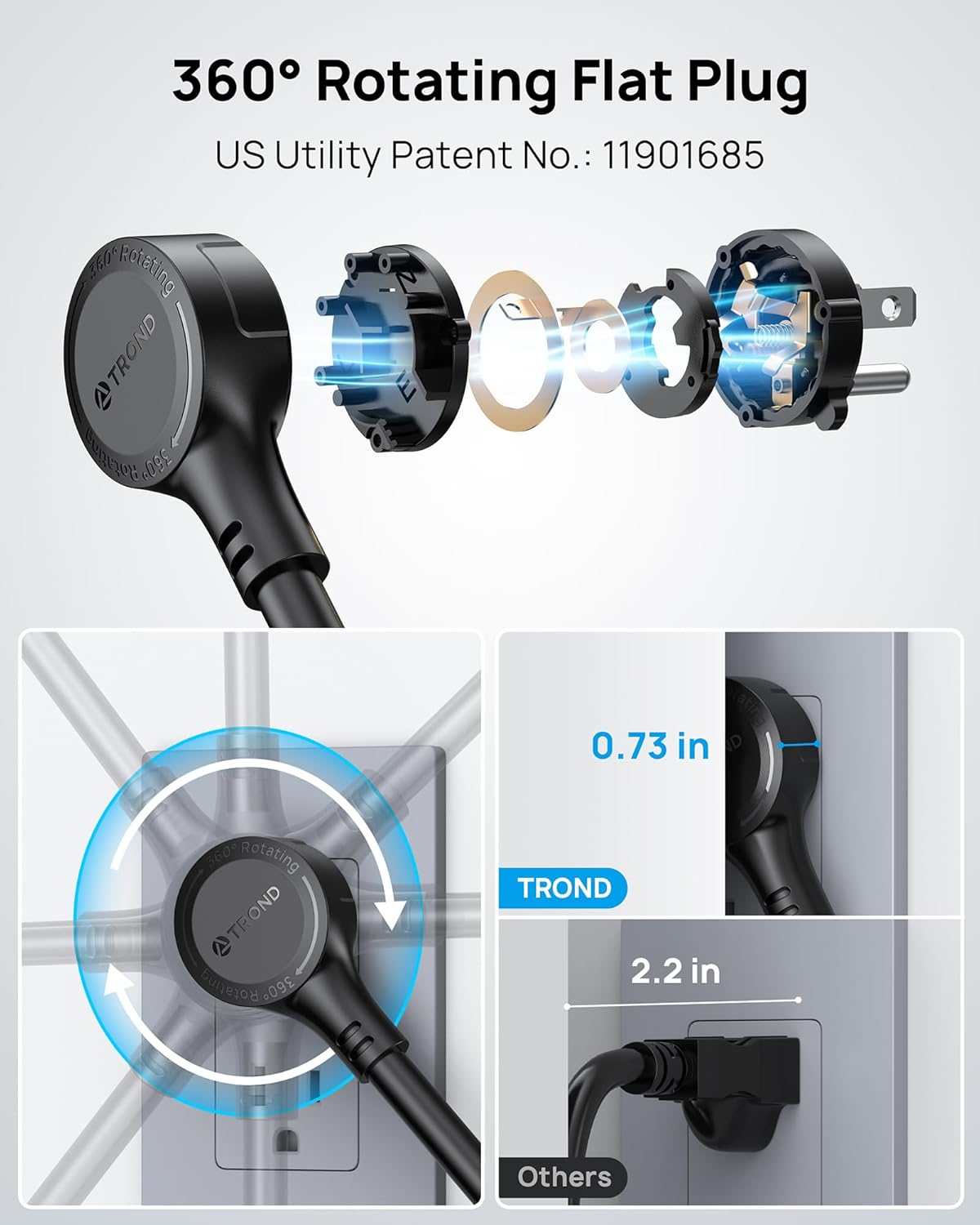 - 360° Rotating Flat Plug: Featuring a 360° rotating flat plug (US Patent No. 11901685), this power strip surge protector offers unparalleled flexibility, allowing you to position it at any angle to fit snugly against walls or maneuver around tight spaces without obstructing other outlets or furniture
