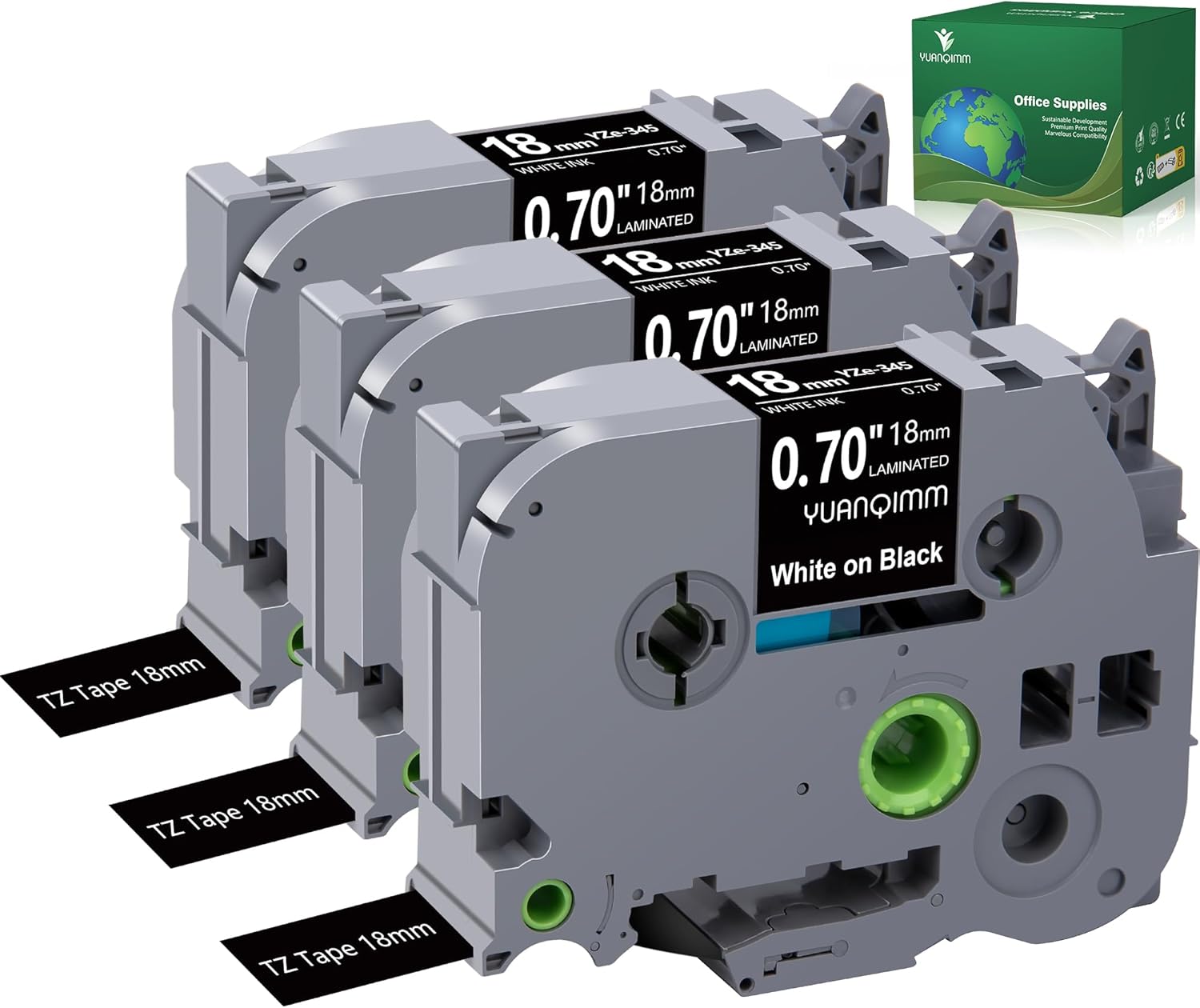 - Package included: 3-Pack Compatible with Brother PTouch TZe-345 TZ-345 TZe345 TZ345 18mm 0.7 Inch White on Black Label Maker tape