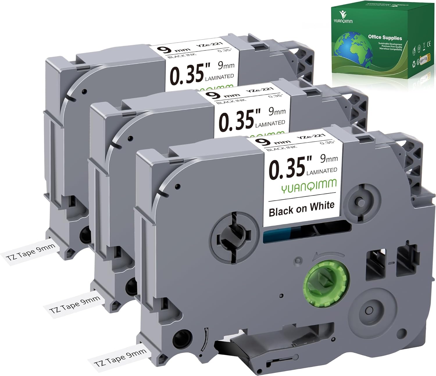 - 3-Pack Compatible for Brother TZe221 TZe-221 TZ221 TZ tape 9mm 0.35 inch laminated white tape for P-Touch Ptouch
