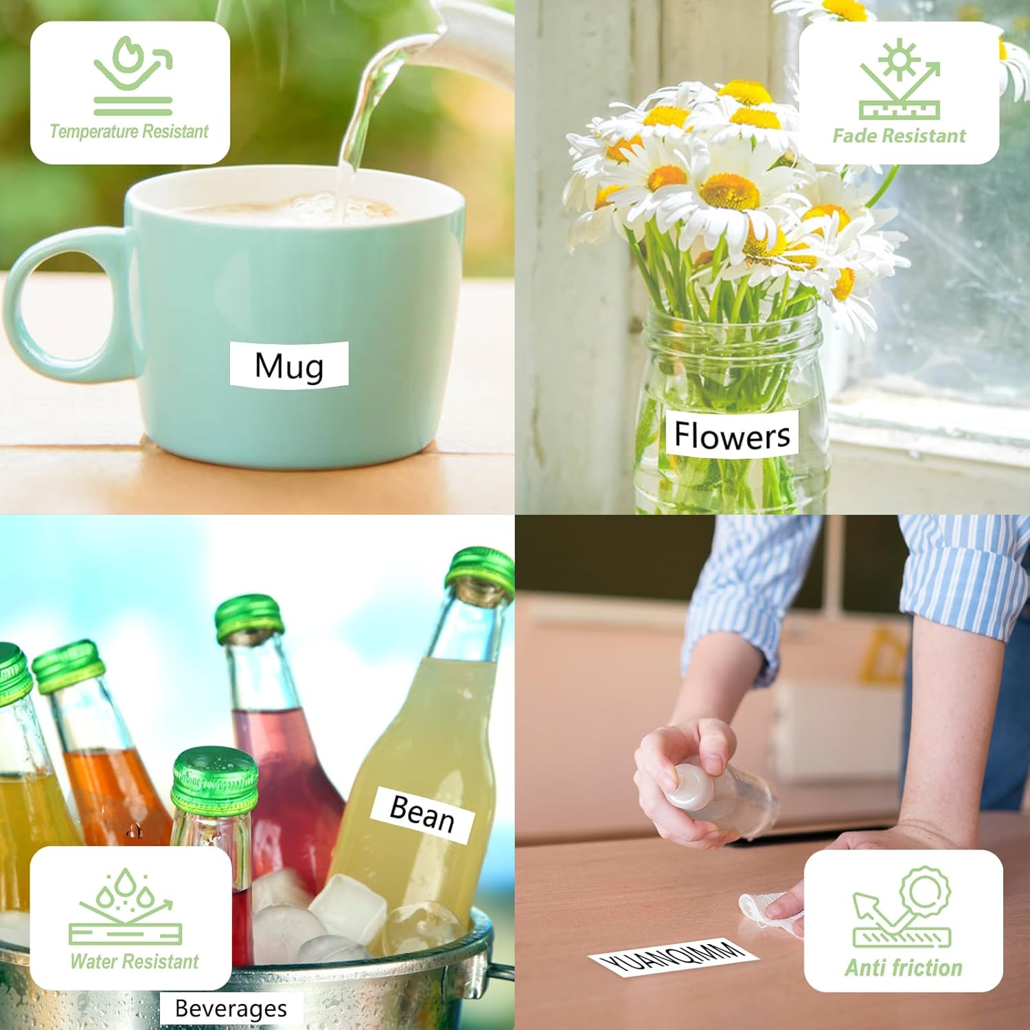 - Color: black letter on white tape, Width: 0.35 inch (9mm 3/8 inch), Length: 26.2 feet (8m) for each label maker tape 9mm 0.35 laminated white