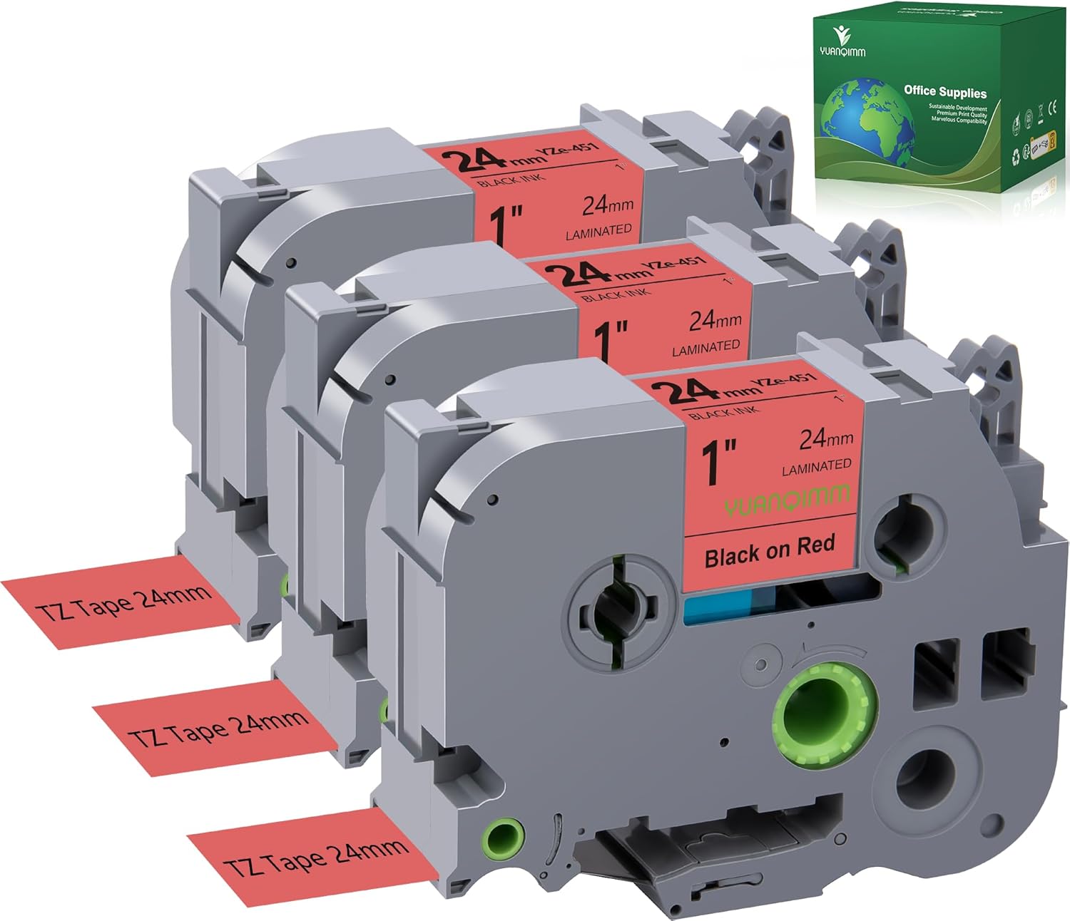 - Package included: 3-Pack Compatible with Brother PTouch TZe-451 TZ-451 TZe451 TZ451 24mm 1 Inch Black on Red Label Maker tape