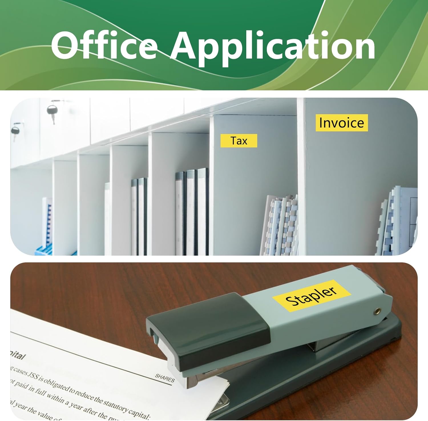 - Applications: TZe621 is suitable for home school office warehouse etc. It can be used to label files folders plug sockets books spice jars and more